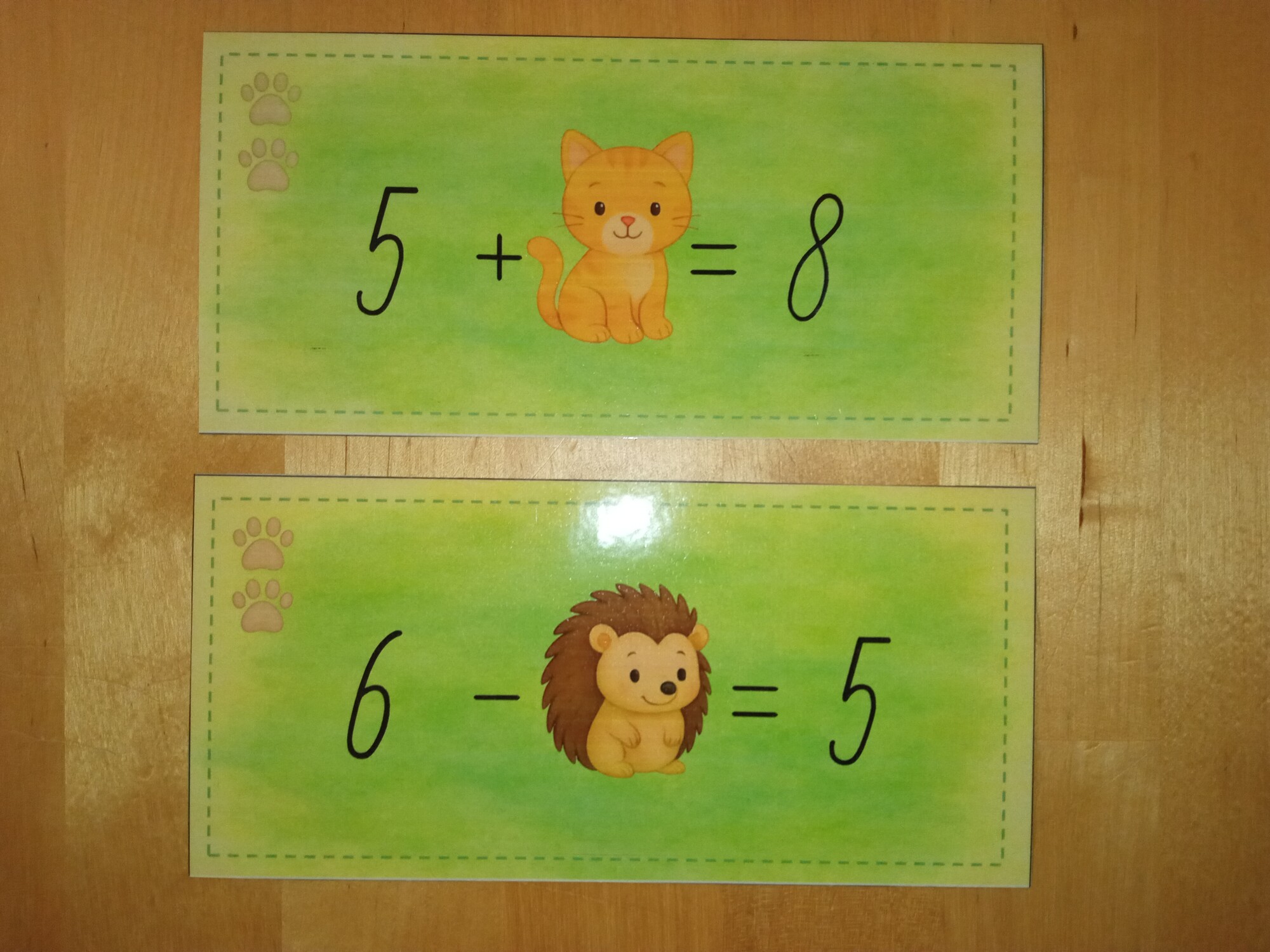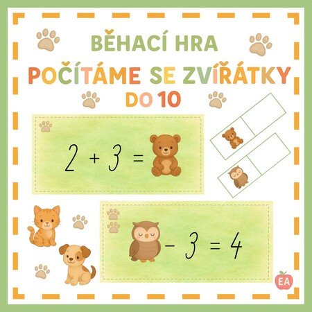 18x kartička s chybějícím součtem/rozdílem (jedna tlapka)