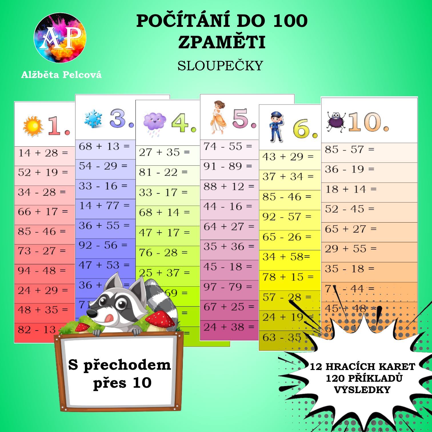 Sloupečky jsou na sčítání a odčítání do 100 zpaměti s přechodem přes 10.