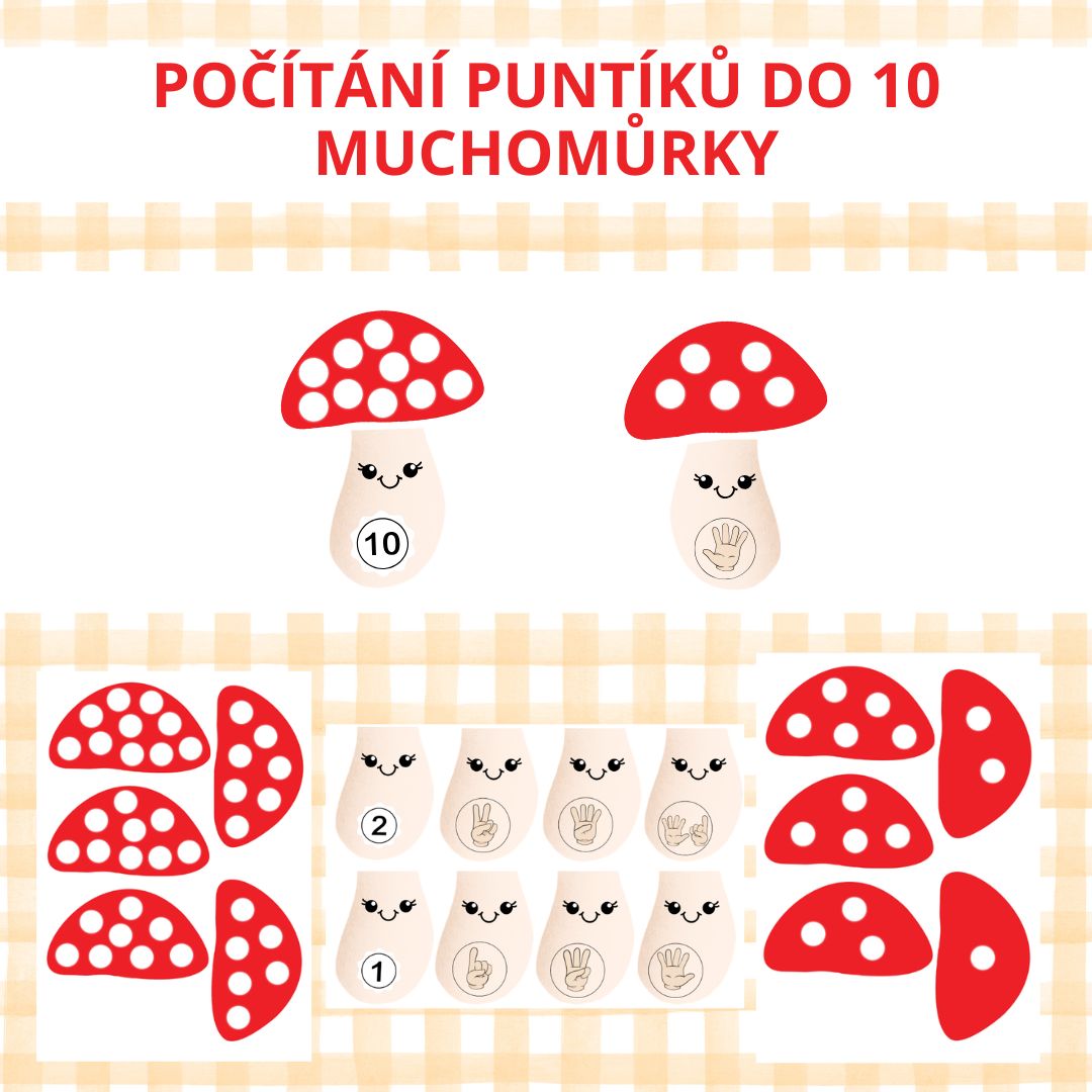3. ZHOTOVENÉ ČÁSTI MUCHOMŮREK ROZDEJTE DĚTEM.