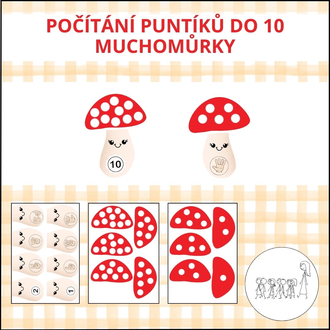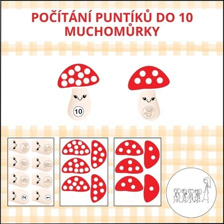 Soubor obsahuje 10 kloboučků a 20 nožiček od muchomůrek.