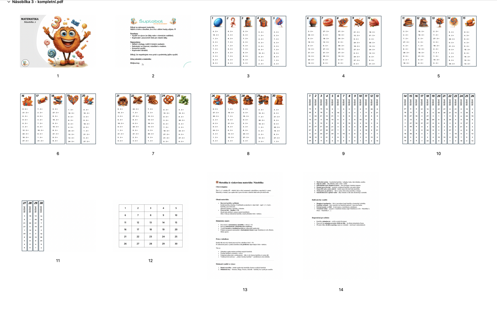 Součástí materiálu je metodika pro učitele a pracovní list s tabulkou, do které si žáci zaznamenávají, které kartičky už vypočítali. Díky tomu mohou sledovat svůj pokrok, plánovat práci a motivovat se k dokončení celé sady.