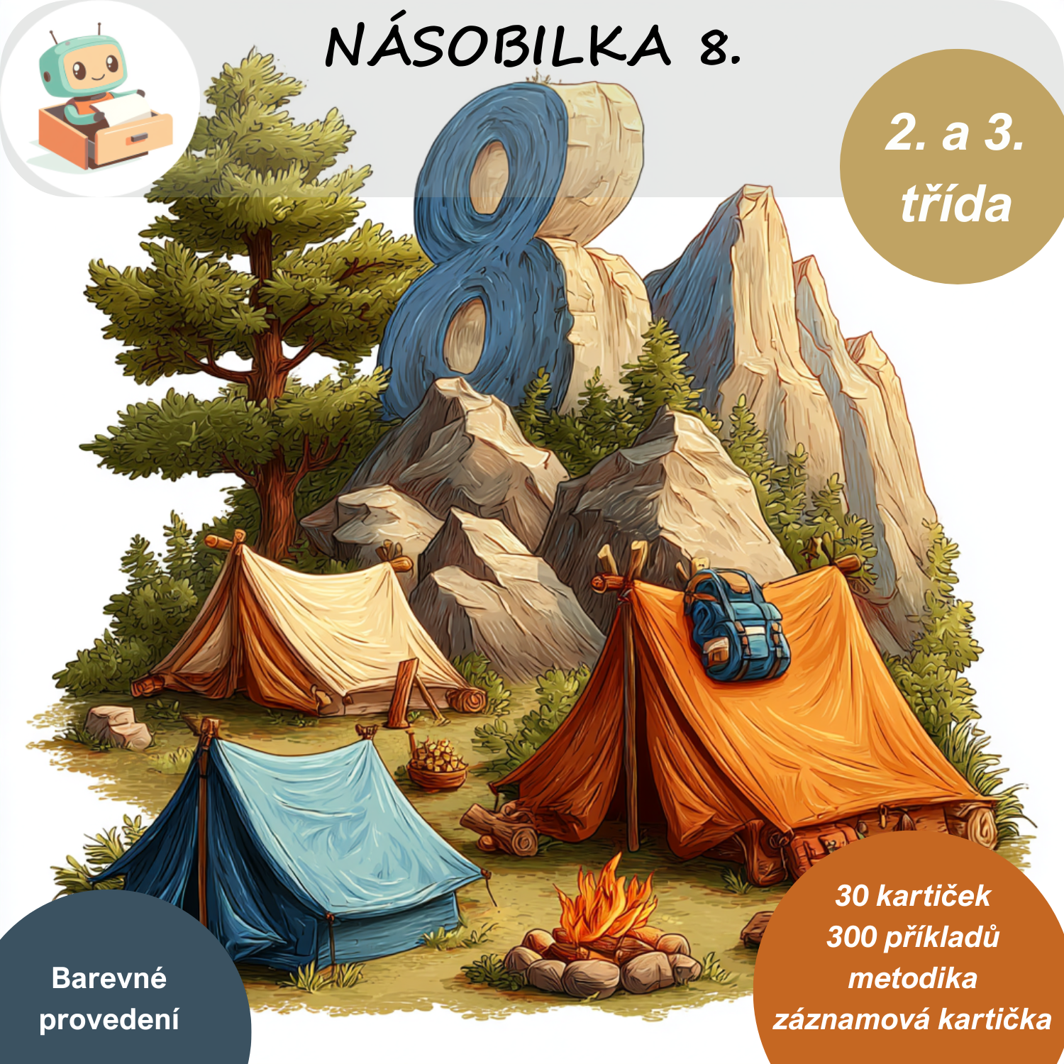 Výukový materiál k upevňování násobilky 8, vhodný pro žáky 2. a 3. třídy. Sada obsahuje 30 kartiček po 10 příkladechna násobení a dělení, které podporují přesnost, jistotu a systematické procvičování.