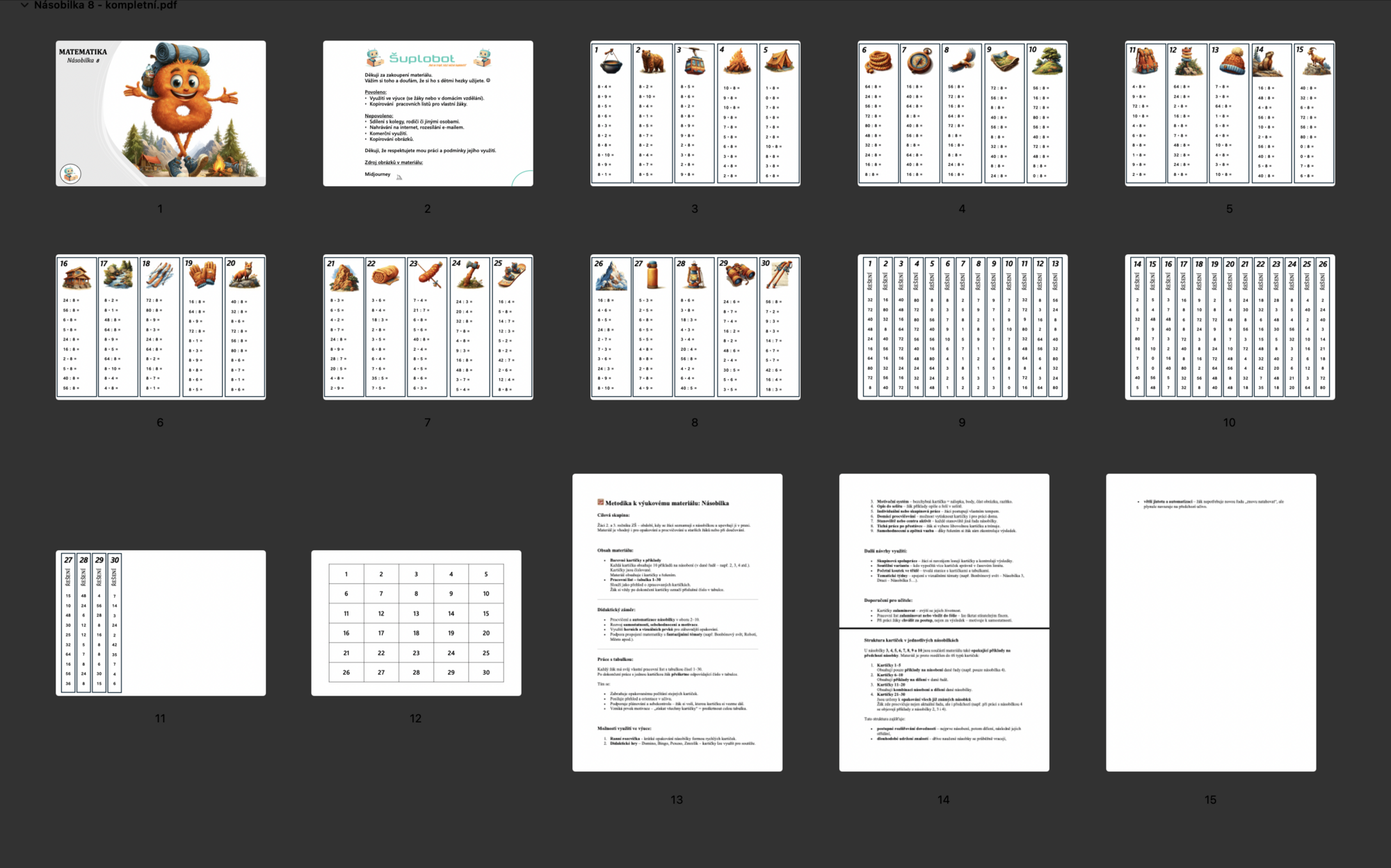 Součástí je metodika a pracovní list s tabulkou, kde si žáci zaznamenávají, které kartičky již vypočítali. Materiál podporuje plánování práce a motivaci k dokončení celé série.