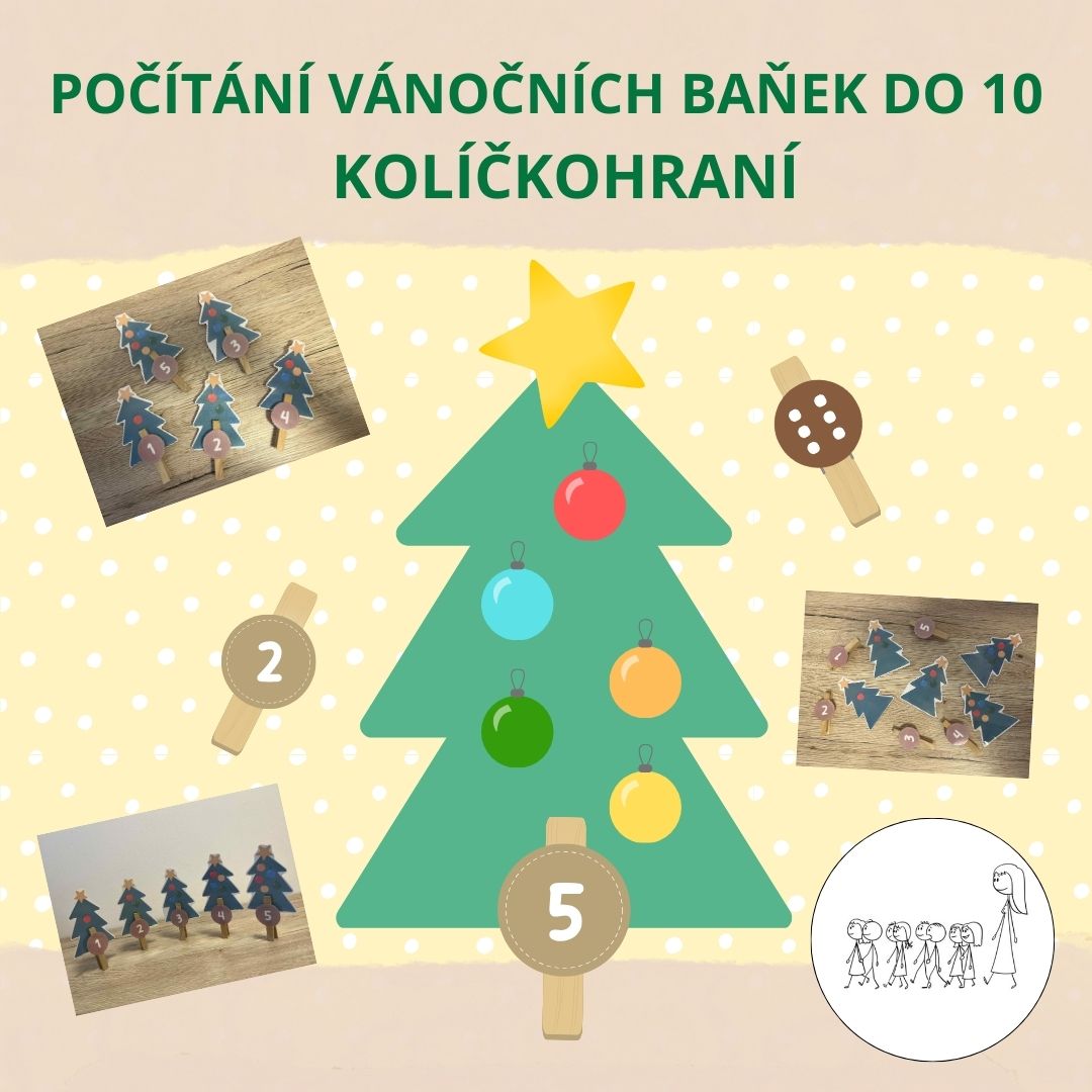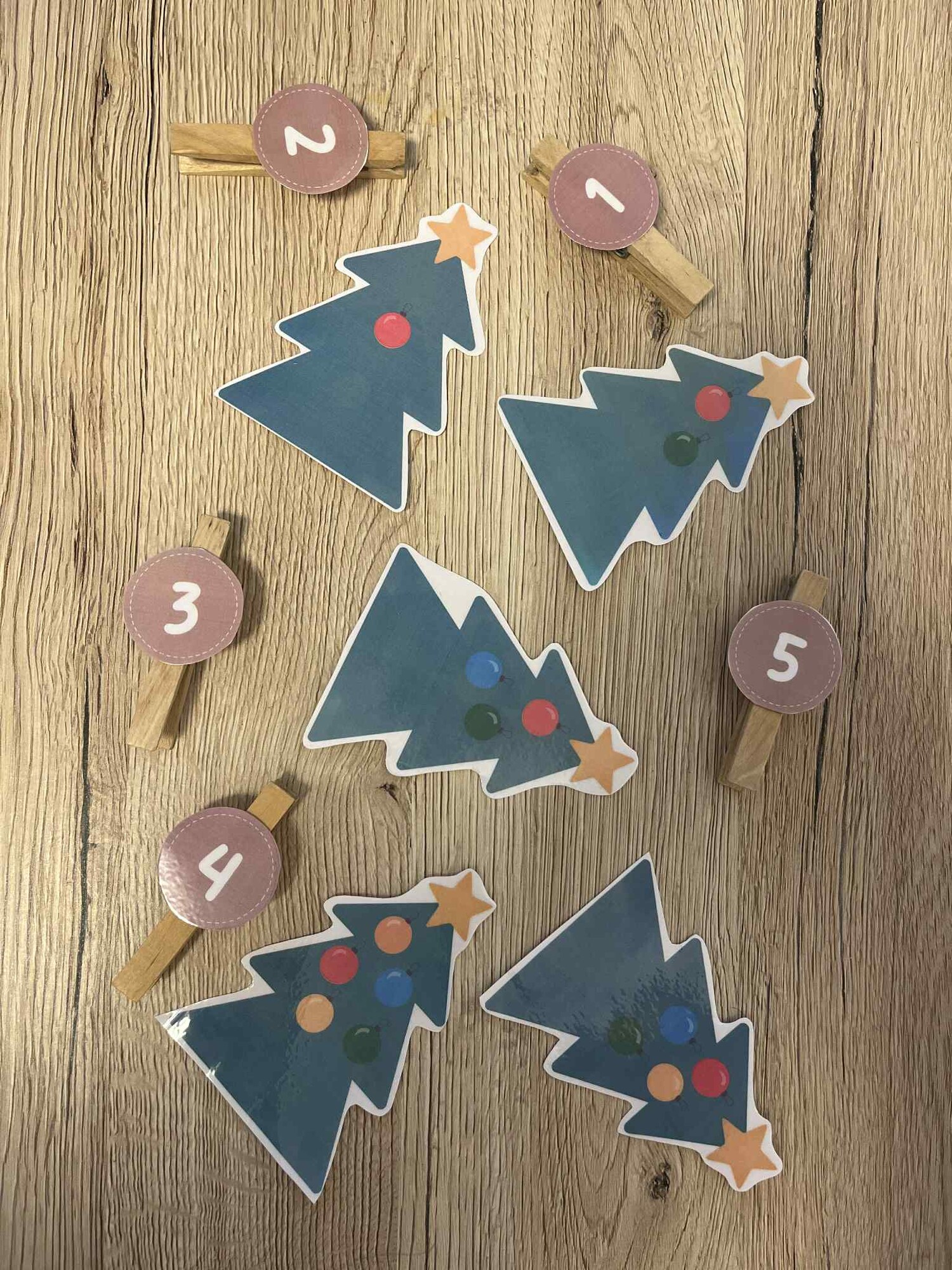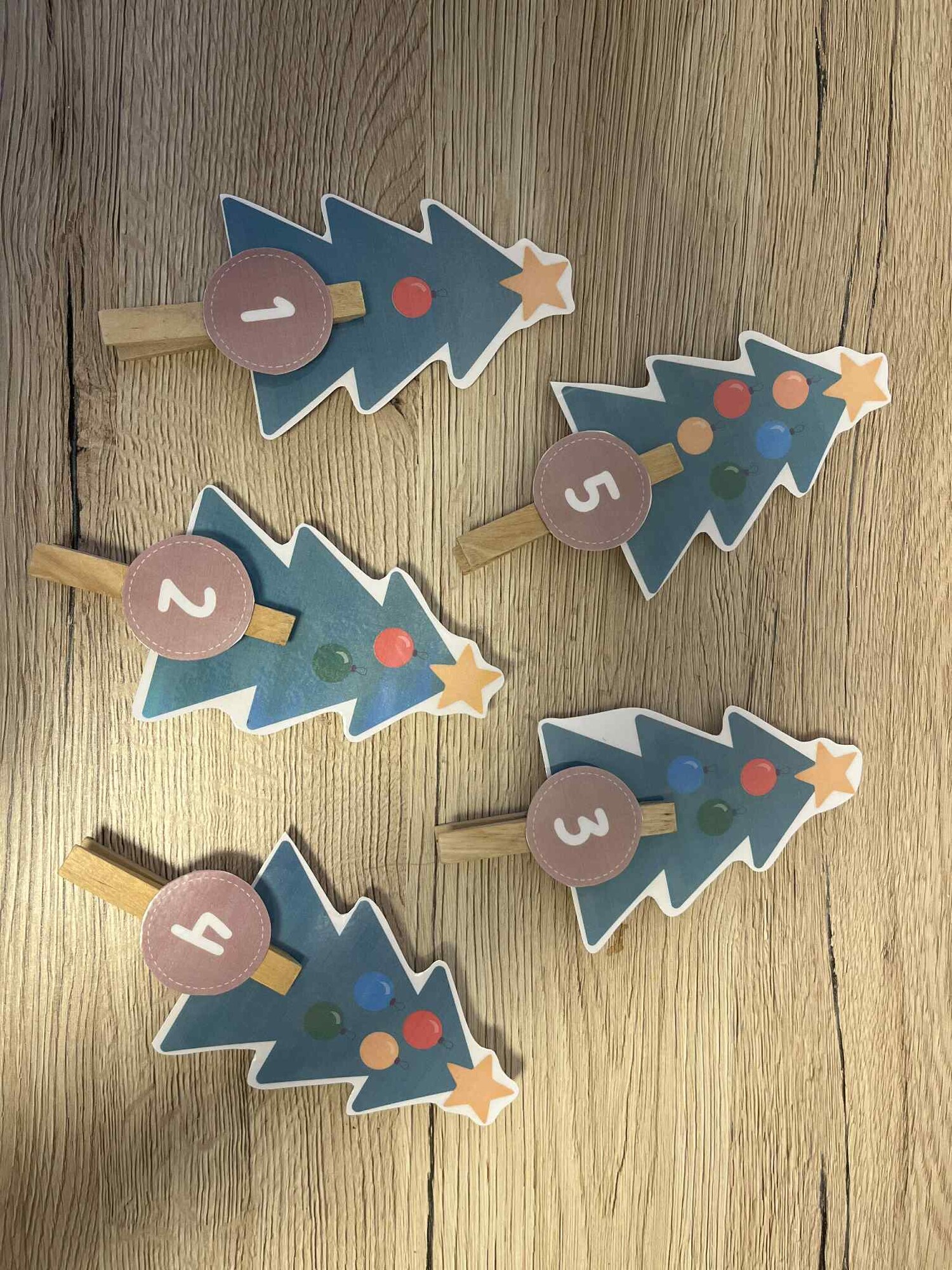 4. Úkolem je připnout správný prádelní kolíček s číslem či puntíkem k danému stromu.