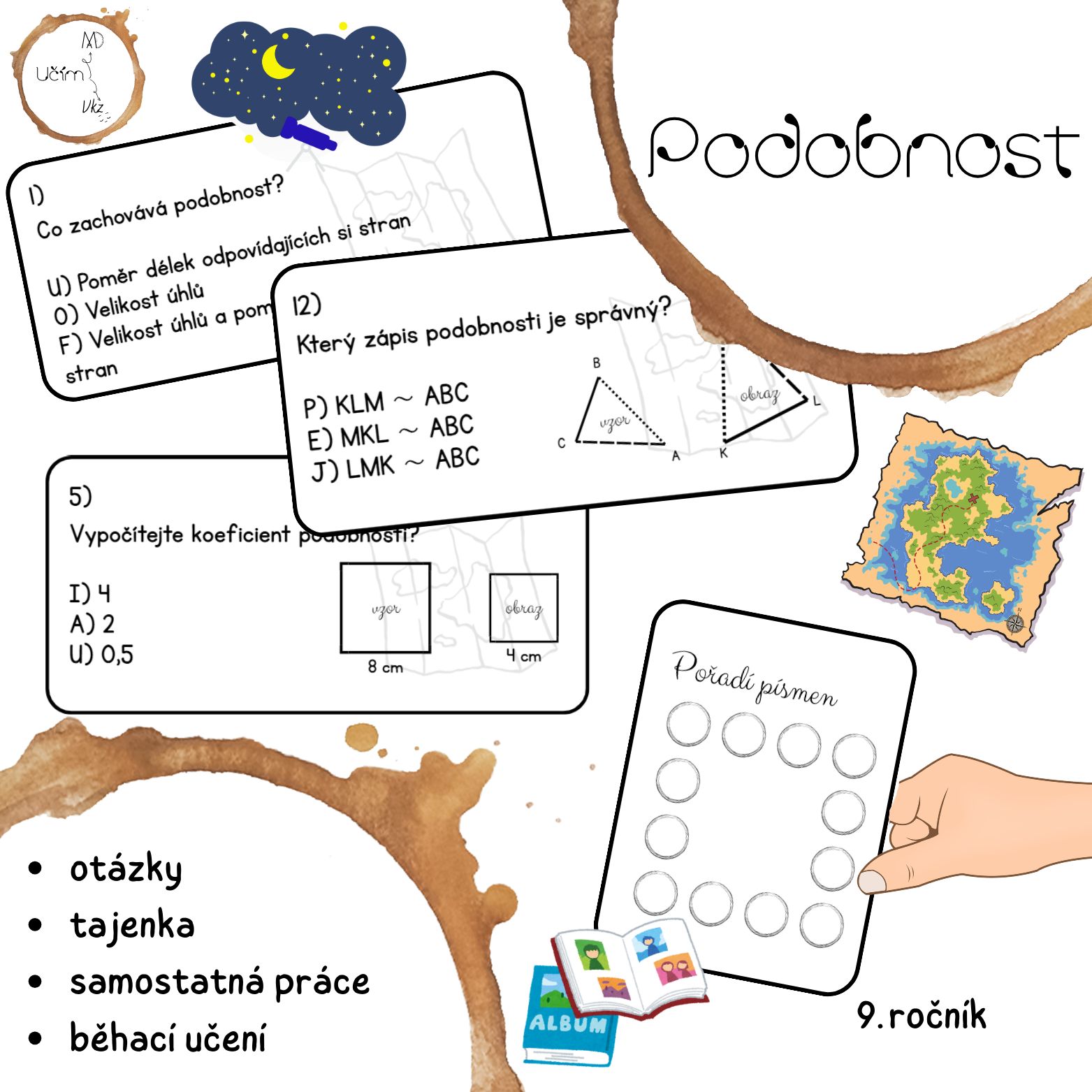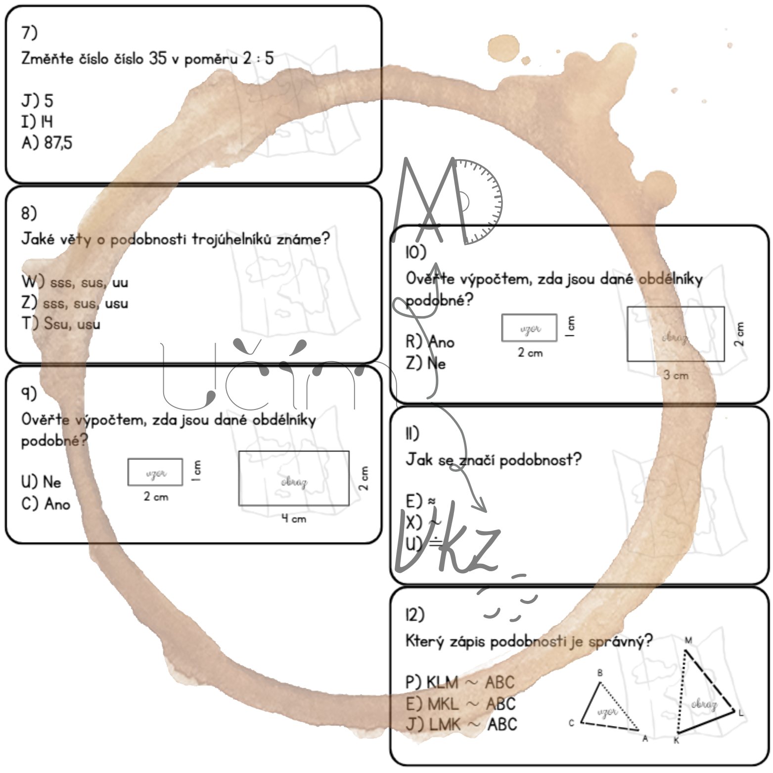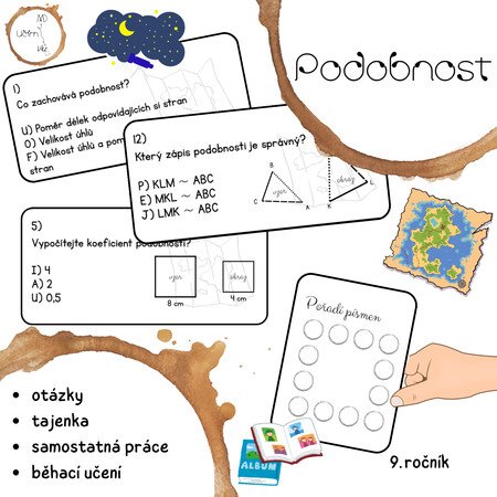 Materiál obsahuje 12 příkladů na podobnost (teorie i příklady). Materiál je zpracovaný formou Treasure Hunt zaměřené na využití pohybu ve výuce.