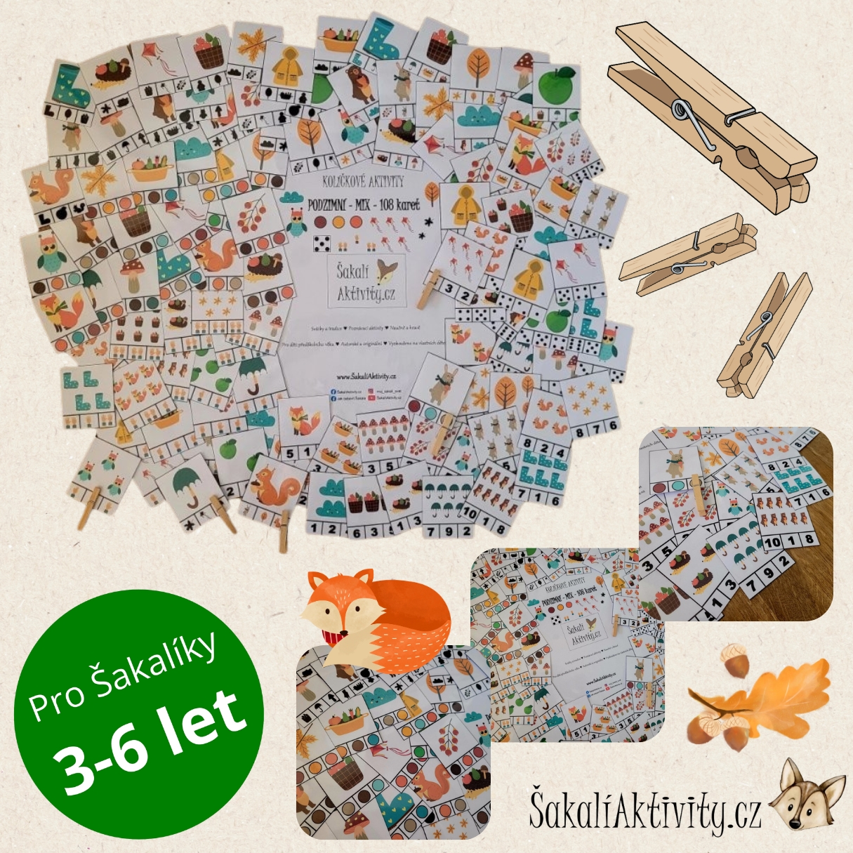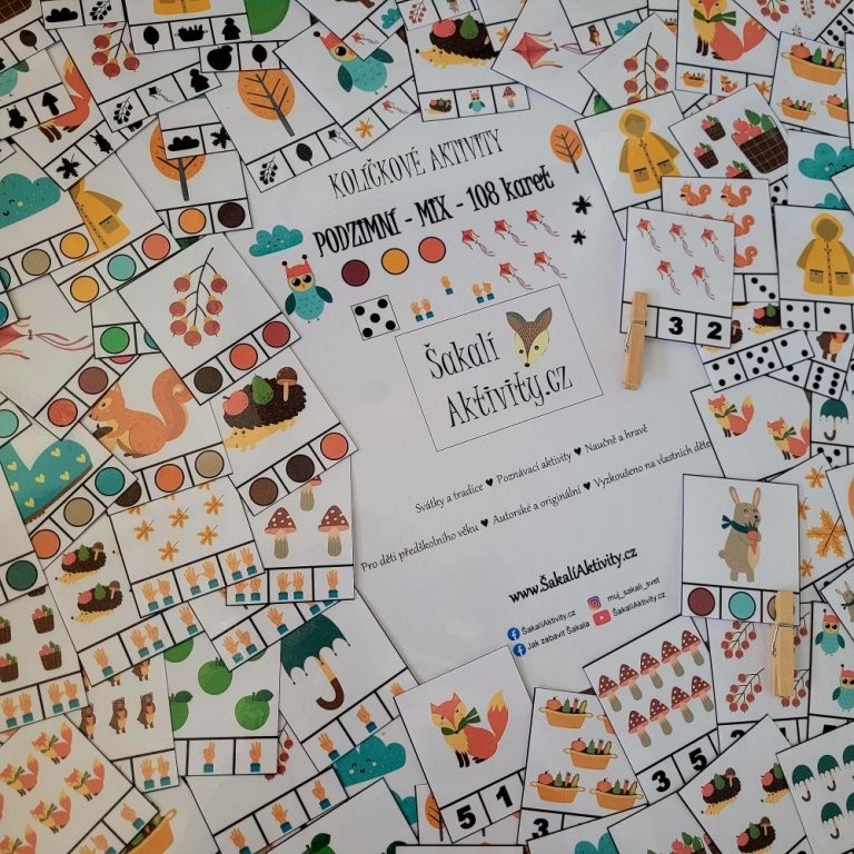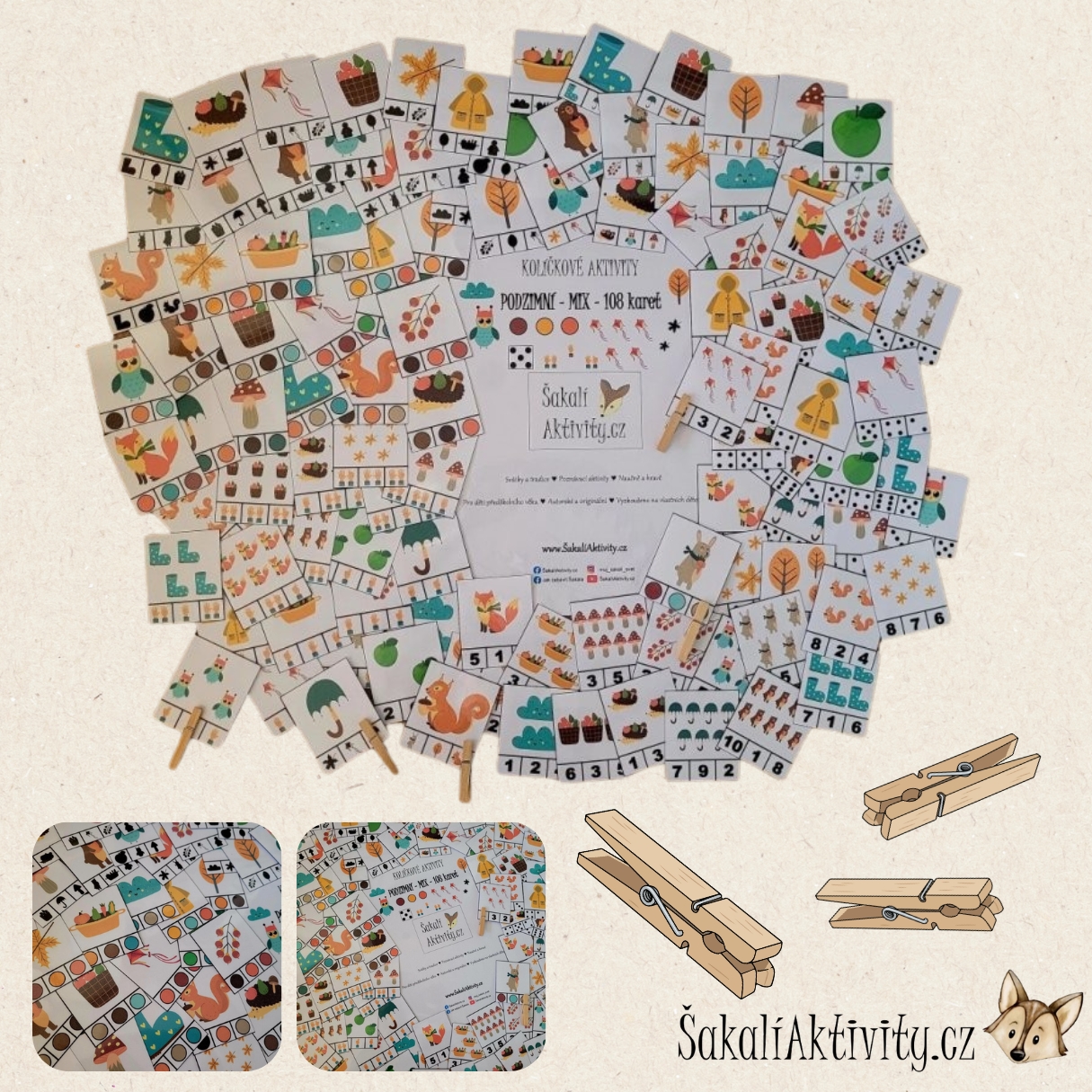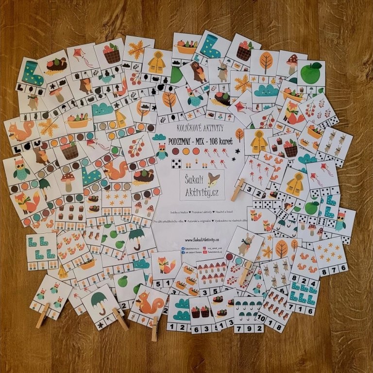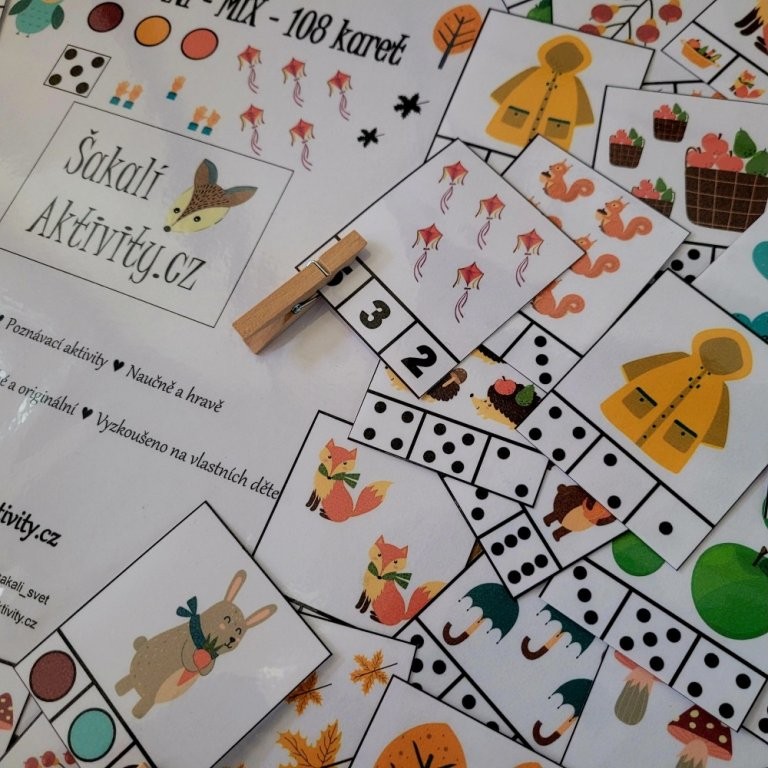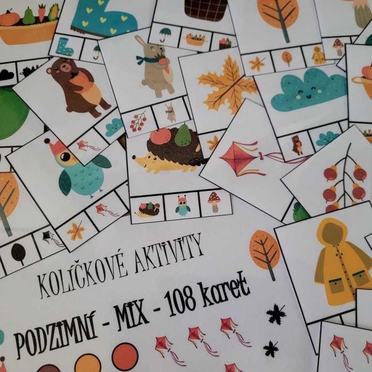 Aktivita je určena pro dlouhodobé využití, doporučuje se zalaminovat a rozstříhat na jednotlivé karty. Celá sada obsahuje 108 karet, takže pokrývá všechny typy úkolů a umožňuje dětem hravě procvičovat různé dovednosti.