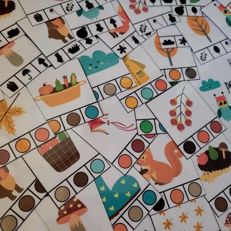 Děti si mohou vybrat různé varianty úkolů – hledání stejných obrázků, přiřazování stínů ke správným obrazcům, přiřazování barev podle převažující barvy v obrázku, nebo počítání vyjádřené číslicí, prsty či puntíky. Odpovědi lze označovat také kroužkováním, přikládáním předmětů nebo ukázáním, což aktivitu činí flexibilní a vhodnou pro různé potřeby a prostředí.