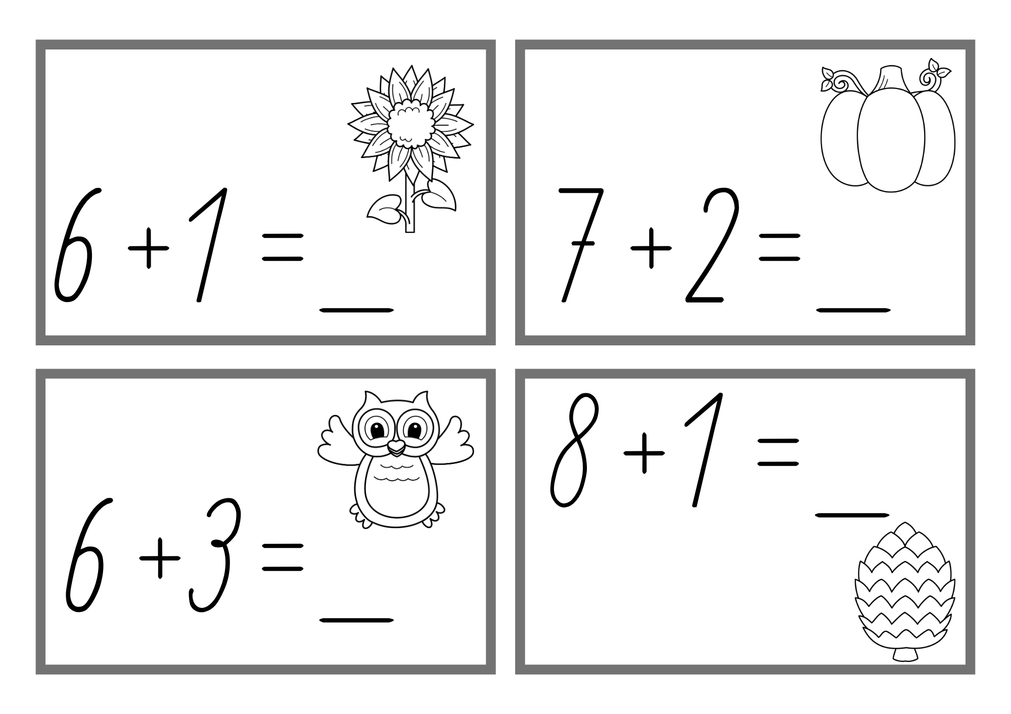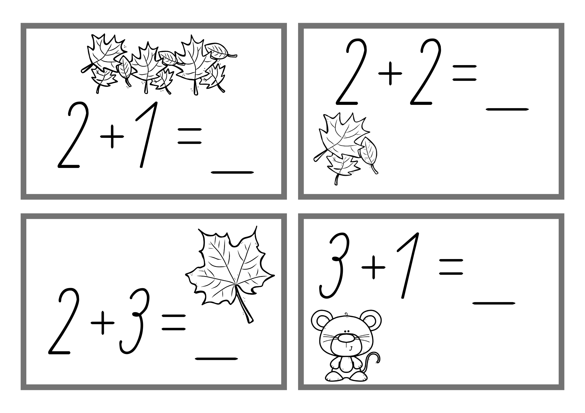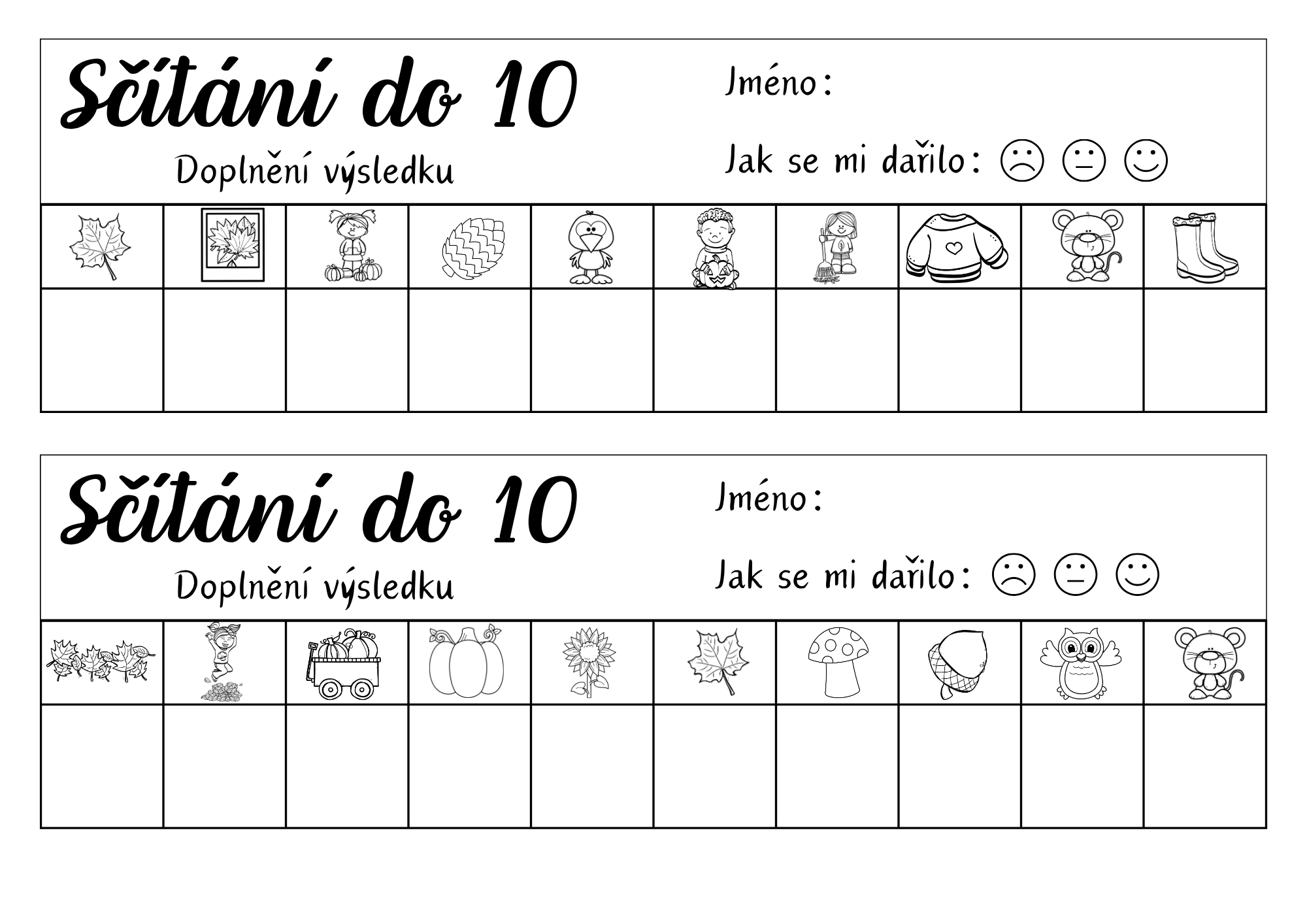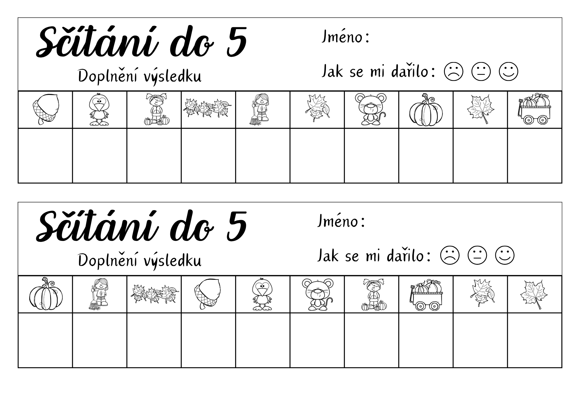 Můžete zvolit jednodušší variantu (sčítání do 5) nebo náročnější (do 10) – děti tak mohou pracovat podle své úrovně.