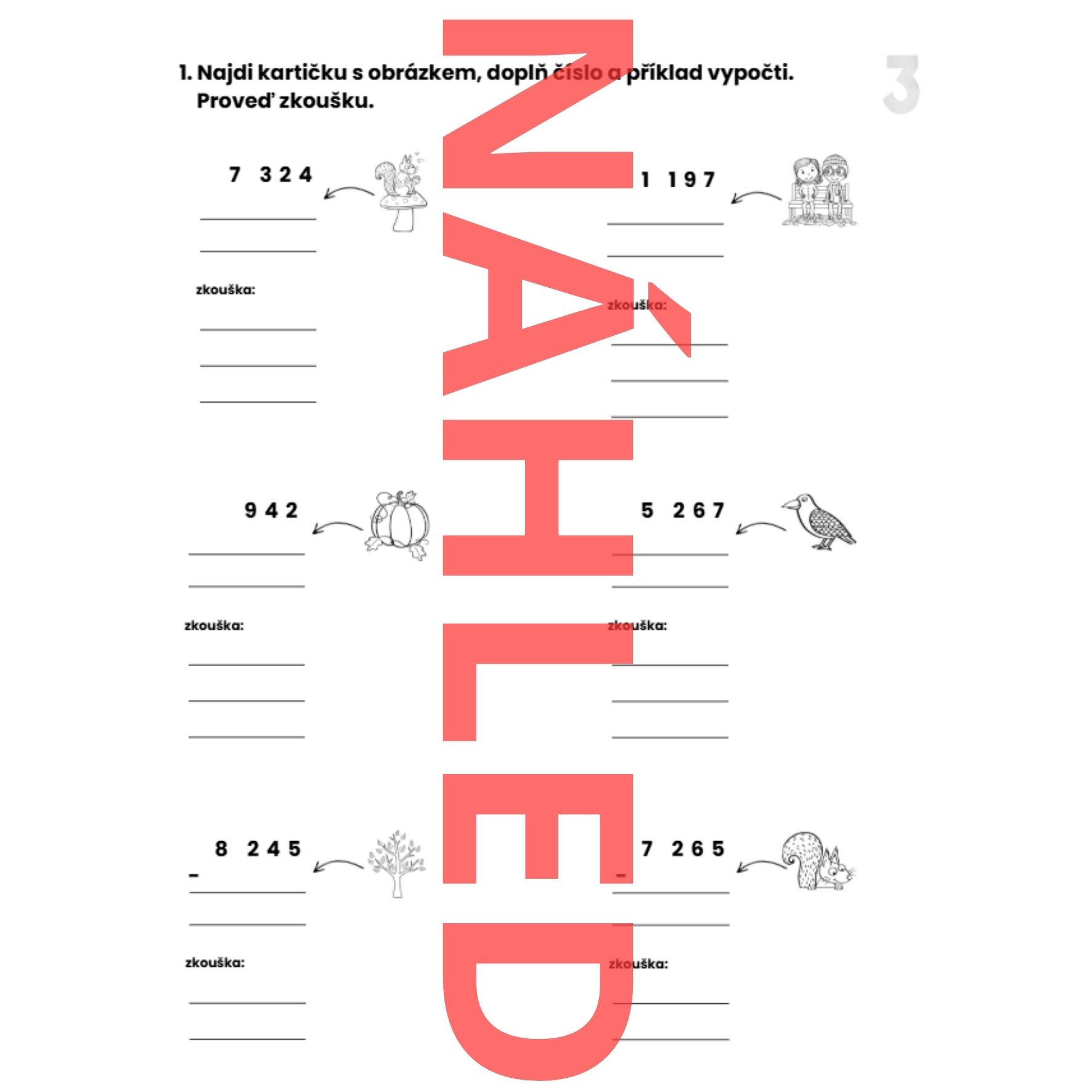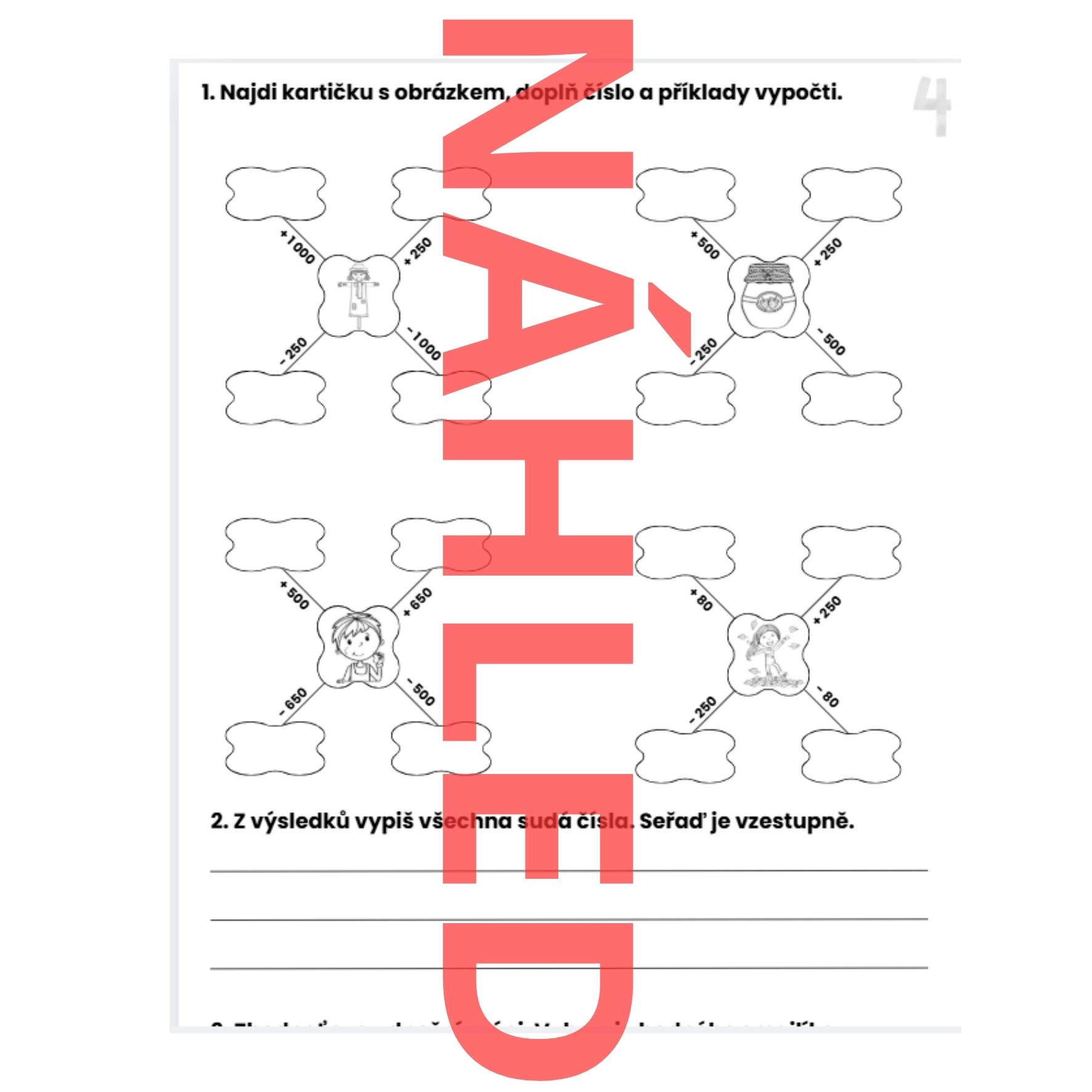Tento materiál kombinuje matematiku s aktivním učením – žáci hledají kartičky s čísly, doplňují příklady a procvičují sčítání i odčítání.