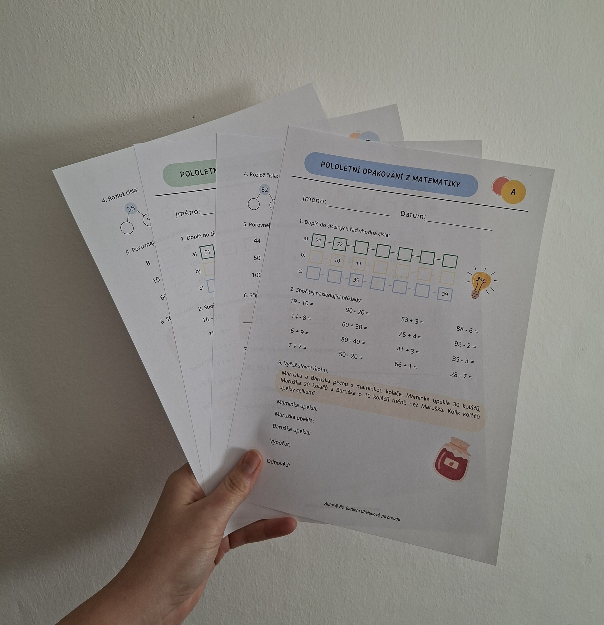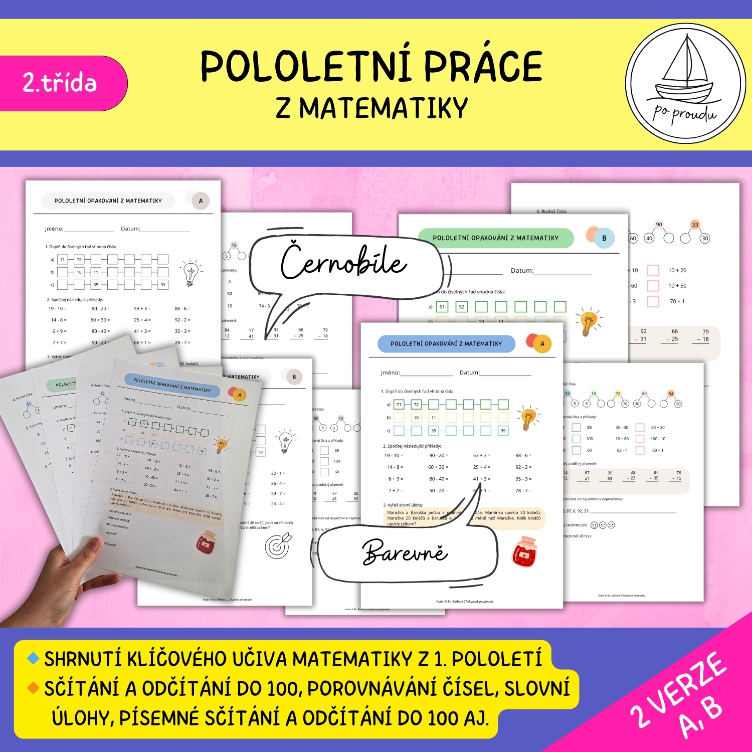 Upozornění: Pololetní práci z matematiky pro 2. třídu lze zakoupit také v balíčku s pololetní prací z českého jazyka a sebehodnocením za 1. pololetí. Obsah materiálu je shodný s verzí obsaženou v balíčku.