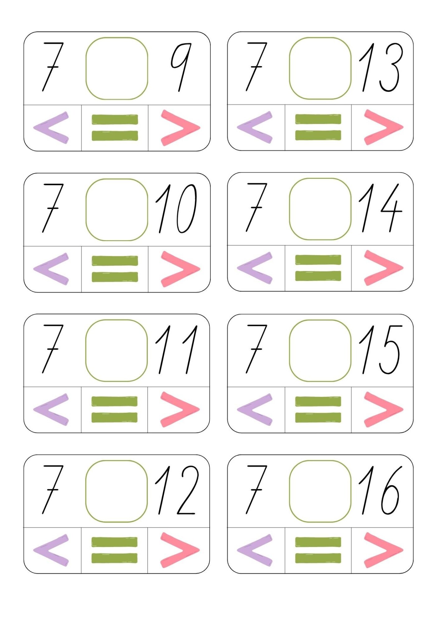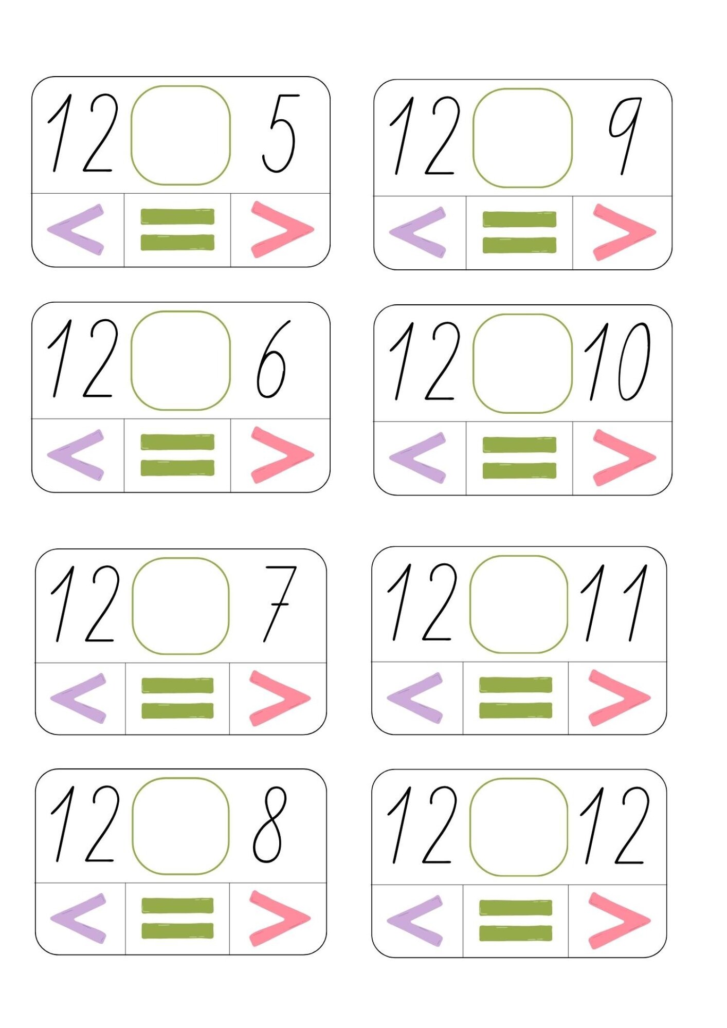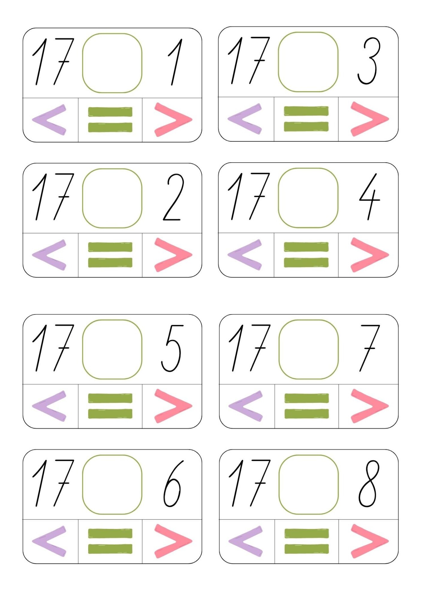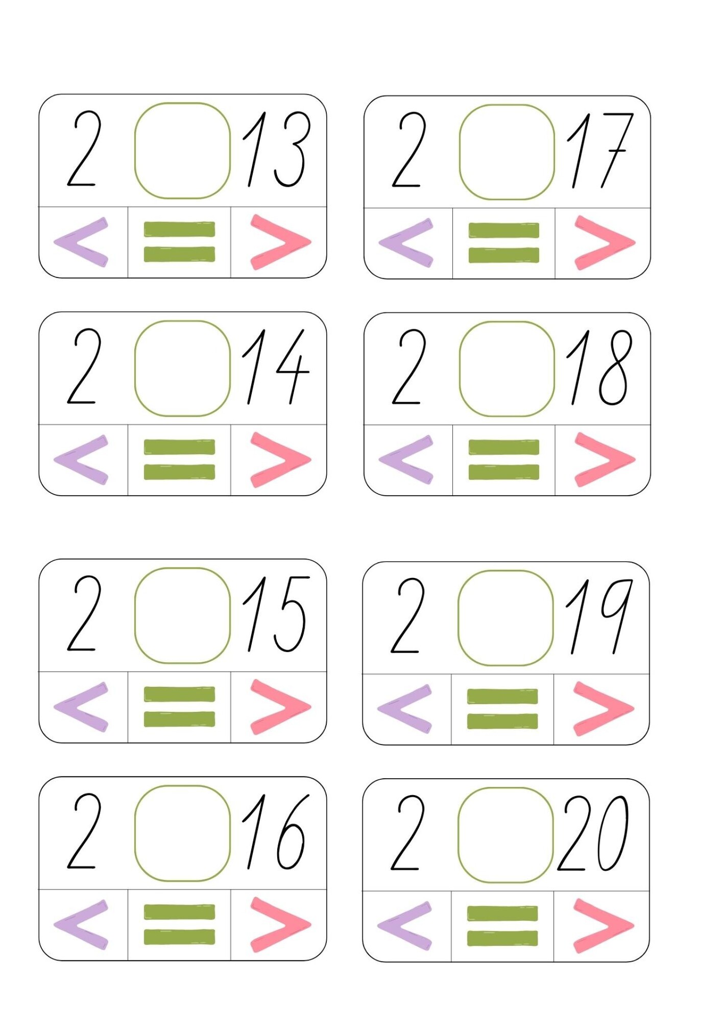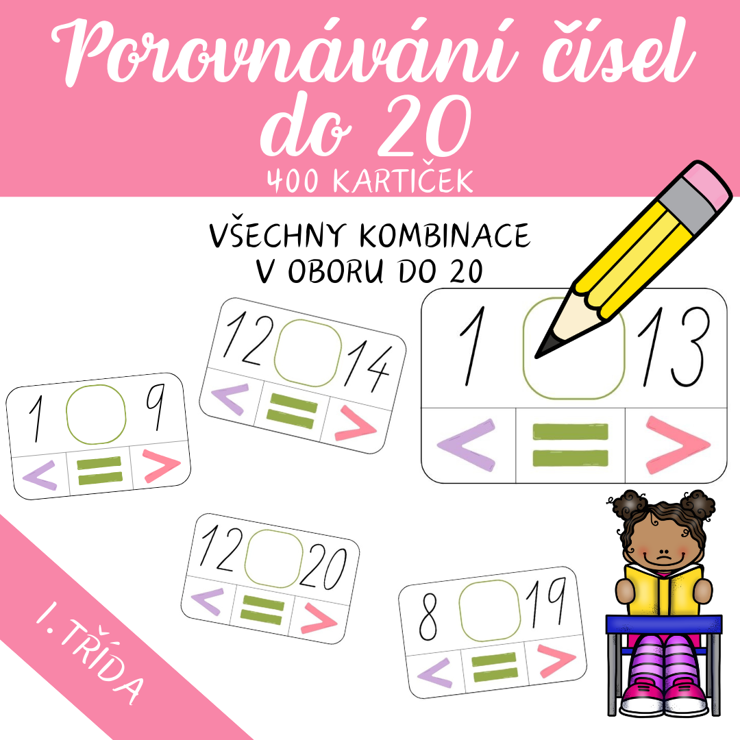 Soubor obsahuje 400 kartiček na porovnávání čísel do 20. Děti procvičují vztahy menší, větší, rovná se a správné používání znamének <, >, = hravou formou.