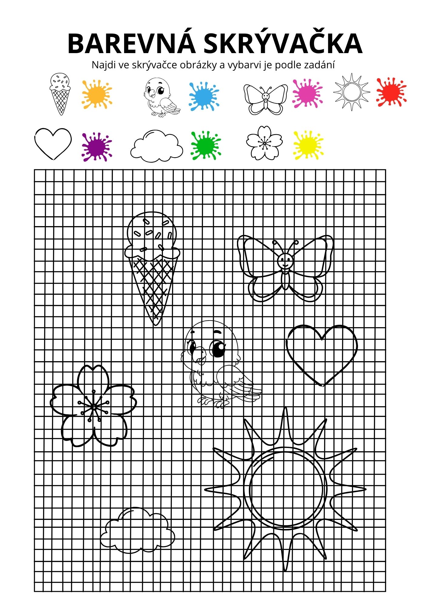 - str. 16 - PL ,,Barevná skrývačka" (vyhledávání obrázků v mřížce a jejich vykreslování dle zadaných barev)