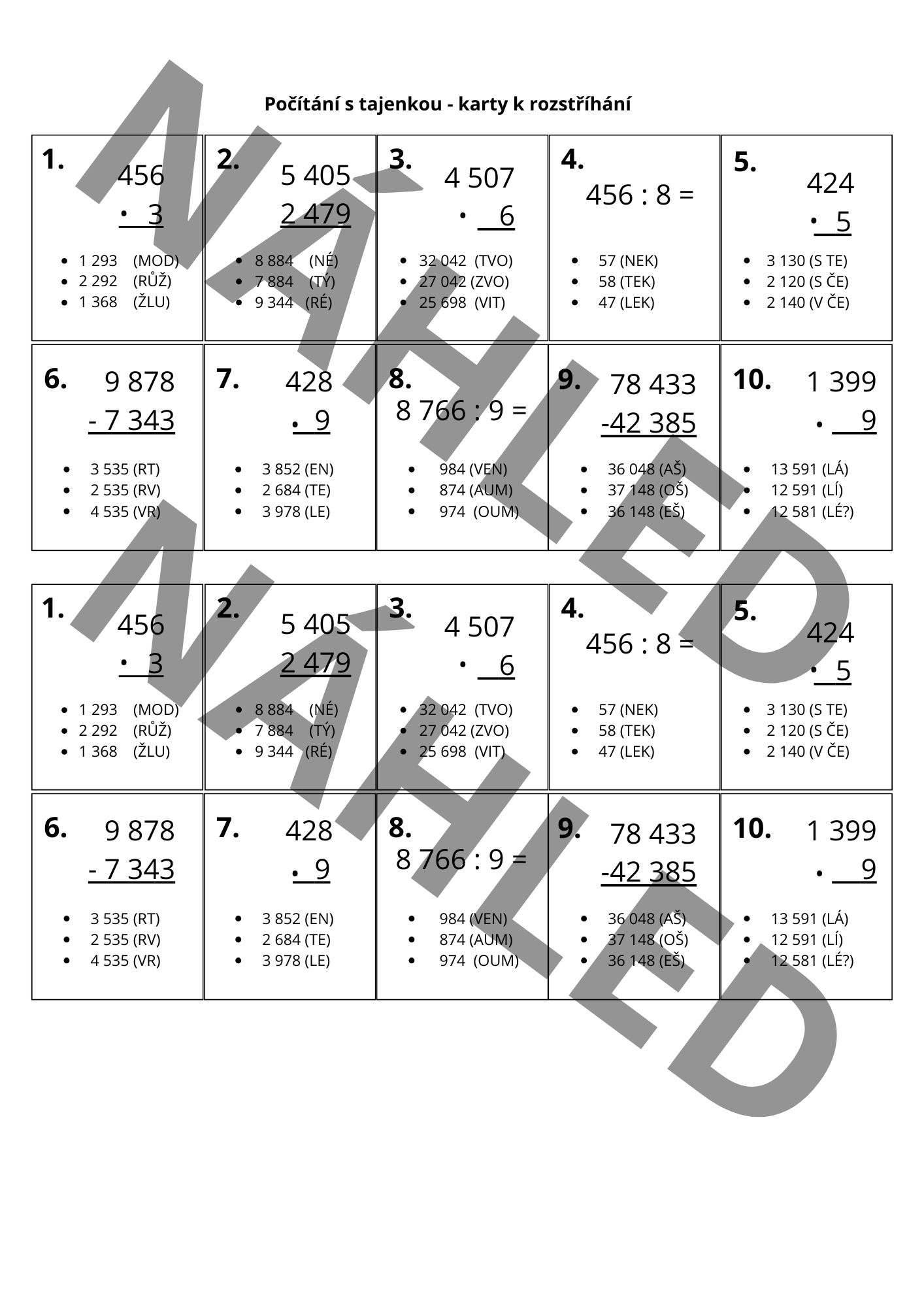 - Vytiskneme karty s úlohami. Nastříháme.