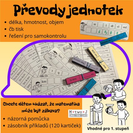 Materiál „Převody jednotek“ je určen pro výuku matematiky na 1. stupni ZŠ. Obsahuje pracovní listy a vizuální pomůcky k procvičování převodů jednotek délky, hmotnosti a objemu. Součástí metodiky jsou návrhy praktických aktivit, které propojují učivo s reálnými situacemi (měření vzdáleností, vážení předmětů, odměřování tekutin). Materiál podporuje názorné učení, rozvoj logického myšlení a aplikaci znalostí v každodenním životě. Vhodné pro individuální i skupinovou práci.