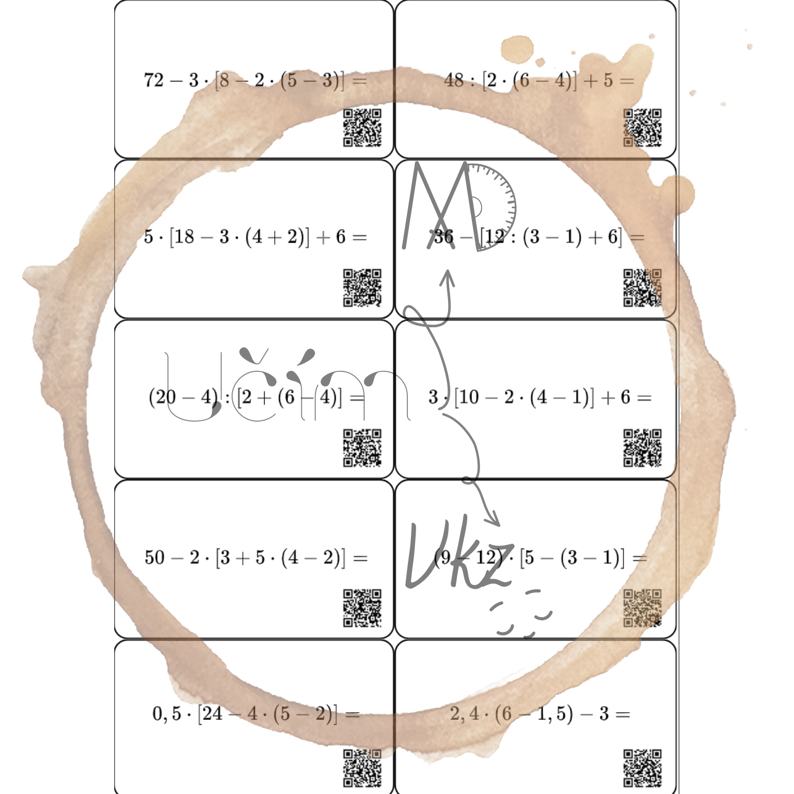 Materiál je určen především pro žáky 9. ročníku jako samostatné opakování na přijímací zkoušky. Kartičky s QR kódy s postupem řešení.