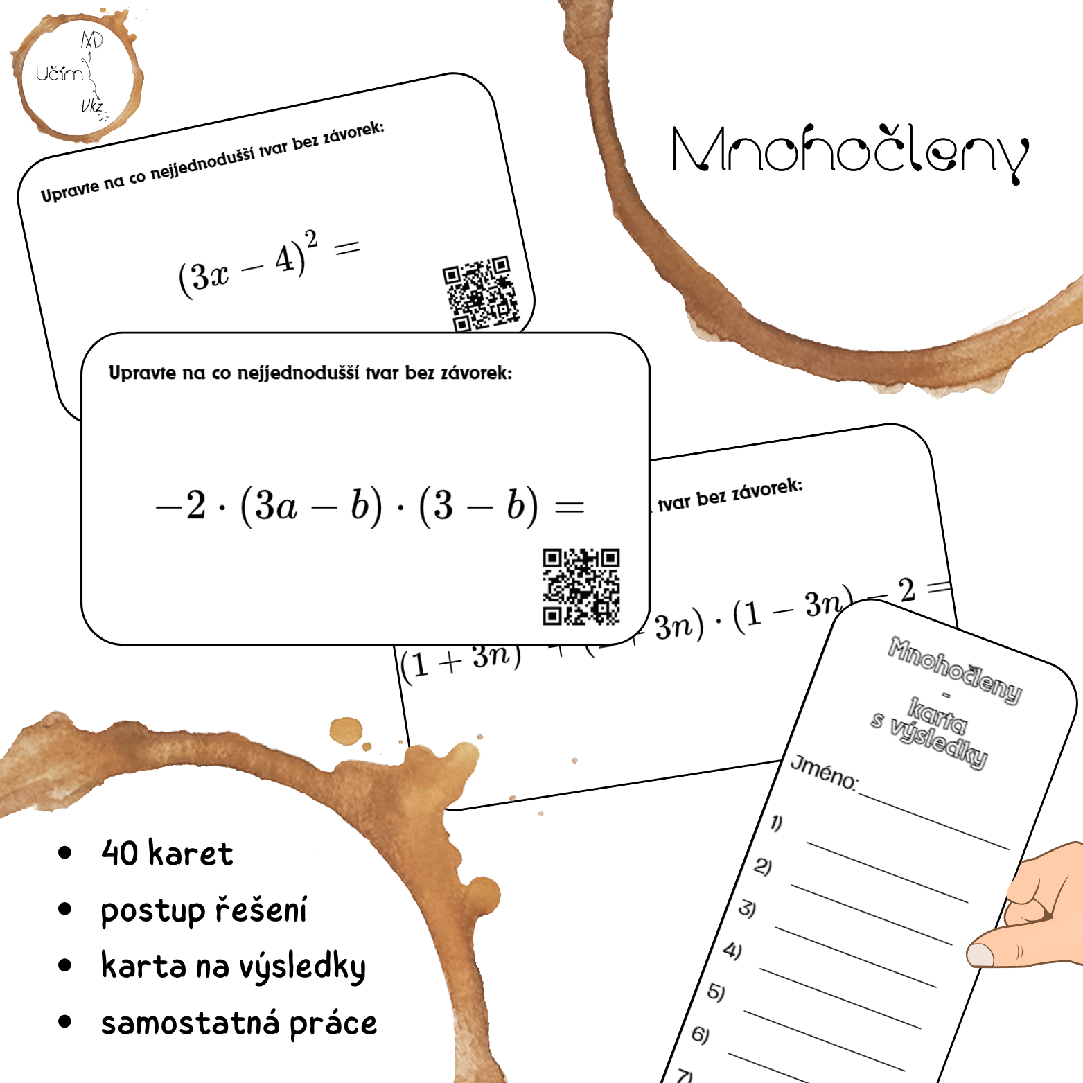 - 40 karet s QR kódy s řešením příkladů