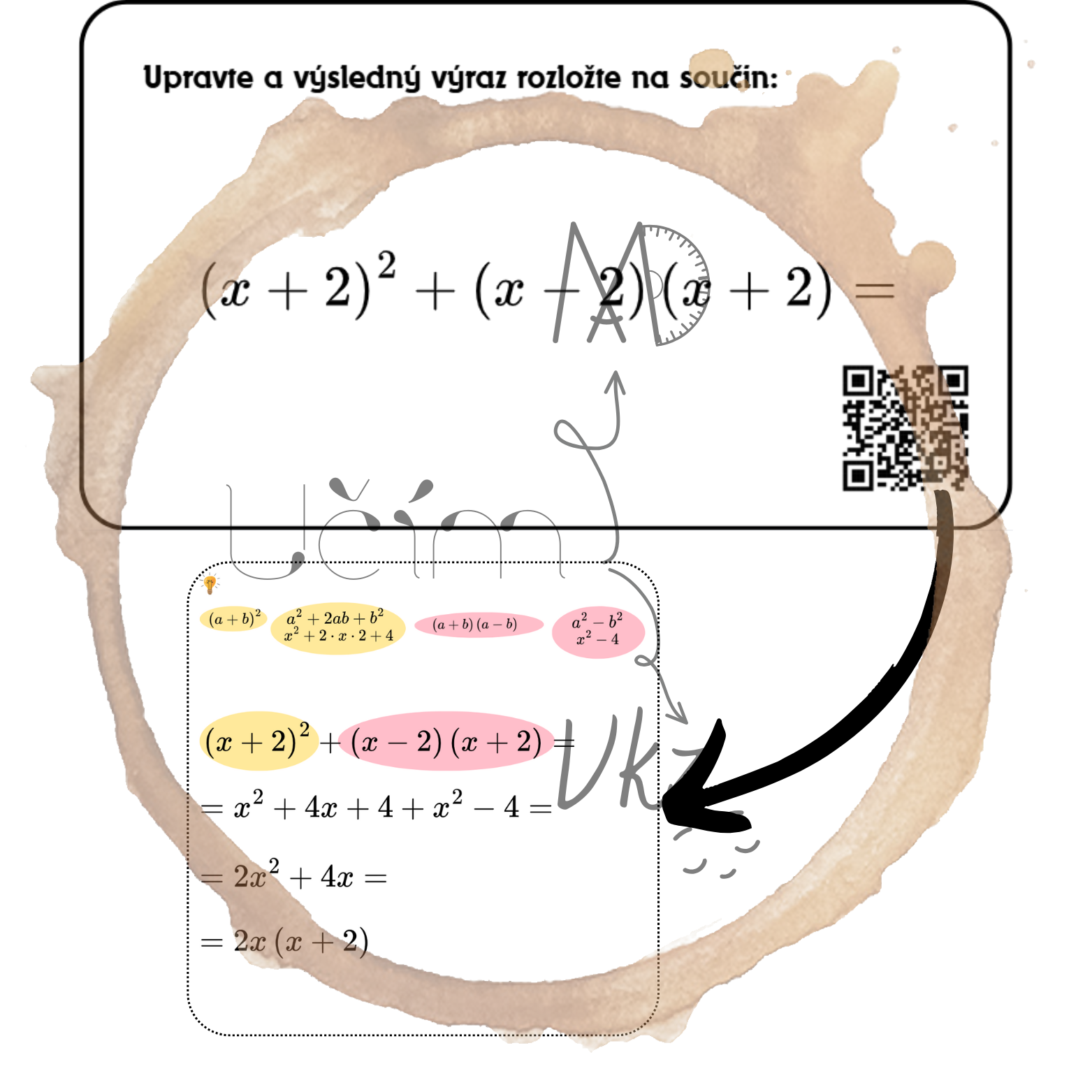 Materiál je určen především pro žáky 9. ročníku jako samostatné opakování na přijímací zkoušky. Kartičky s QR kódy s postupem řešení.