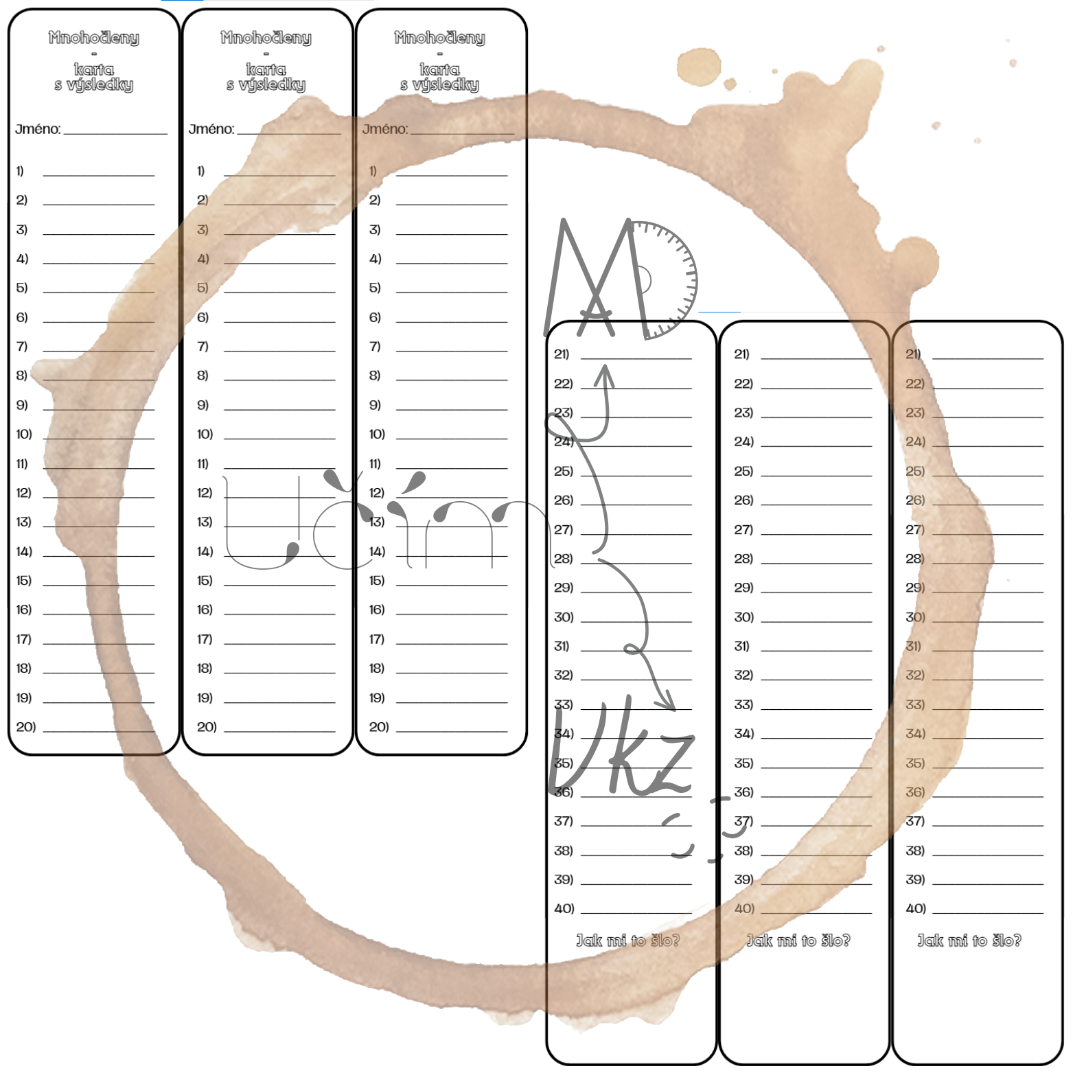 - záznamové karty na výsledky, aby žáci věděli, které příklady již počítali