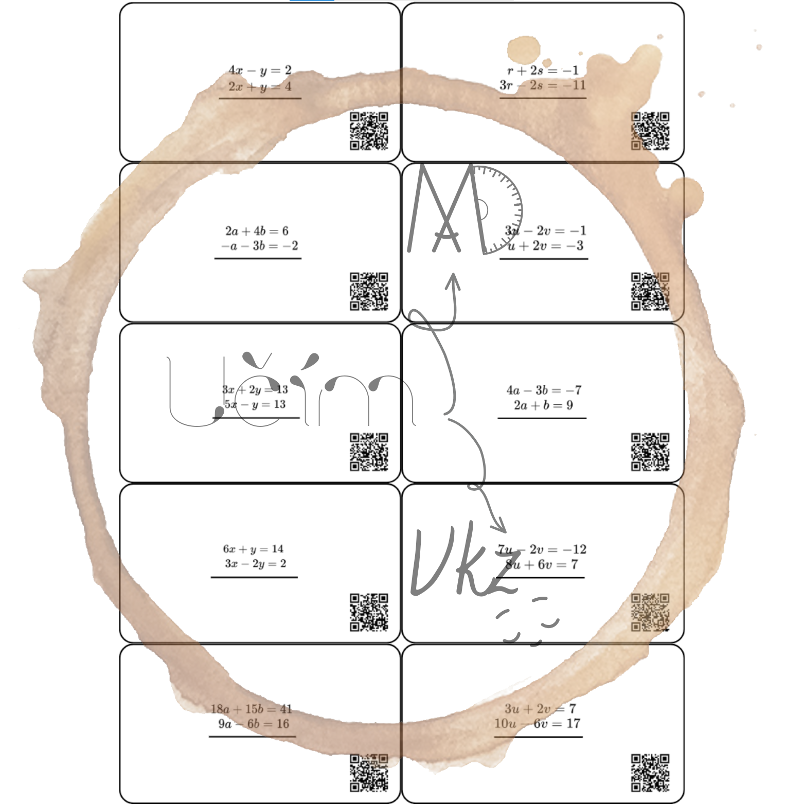 Materiál je určen především pro žáky 9. ročníku jako samostatné opakování na přijímací zkoušky. Kartičky s QR kódy s postupem řešení.