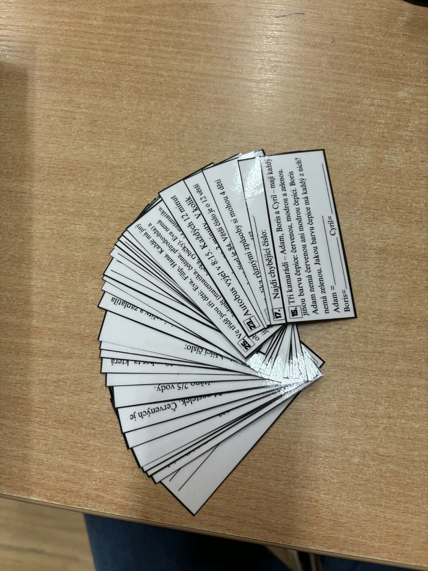 Tento soubor obsahuje 28 karet s přijímačkovými úlohami do matematiky na osmiletá gymnázia. Materiál můžete využít i jako logické úlohy pro rychlejší žáky.