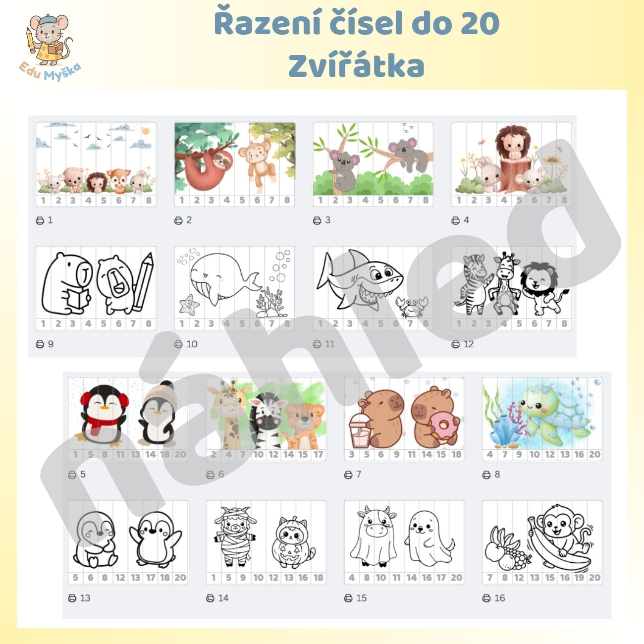 Obrázky je potřeba podle čar rozstříhat, žáci je pak mají srovnat tak, jak jdou čísla za sebou. Vznikne jim díky tomu obrázek.