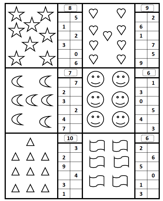 Úkolem dětí je dopsat mazatelným fixem správné číslo. Pomůckou jim mohou být obrázky.
