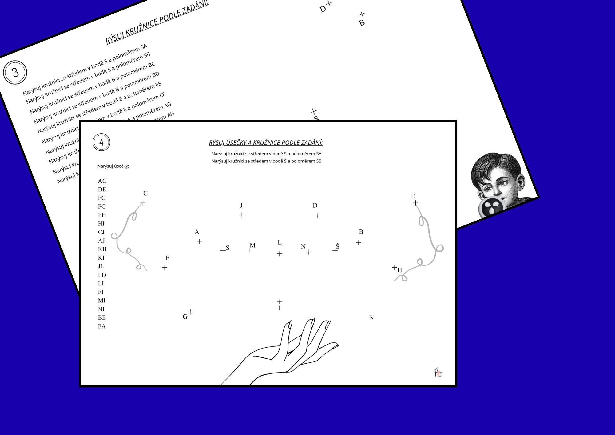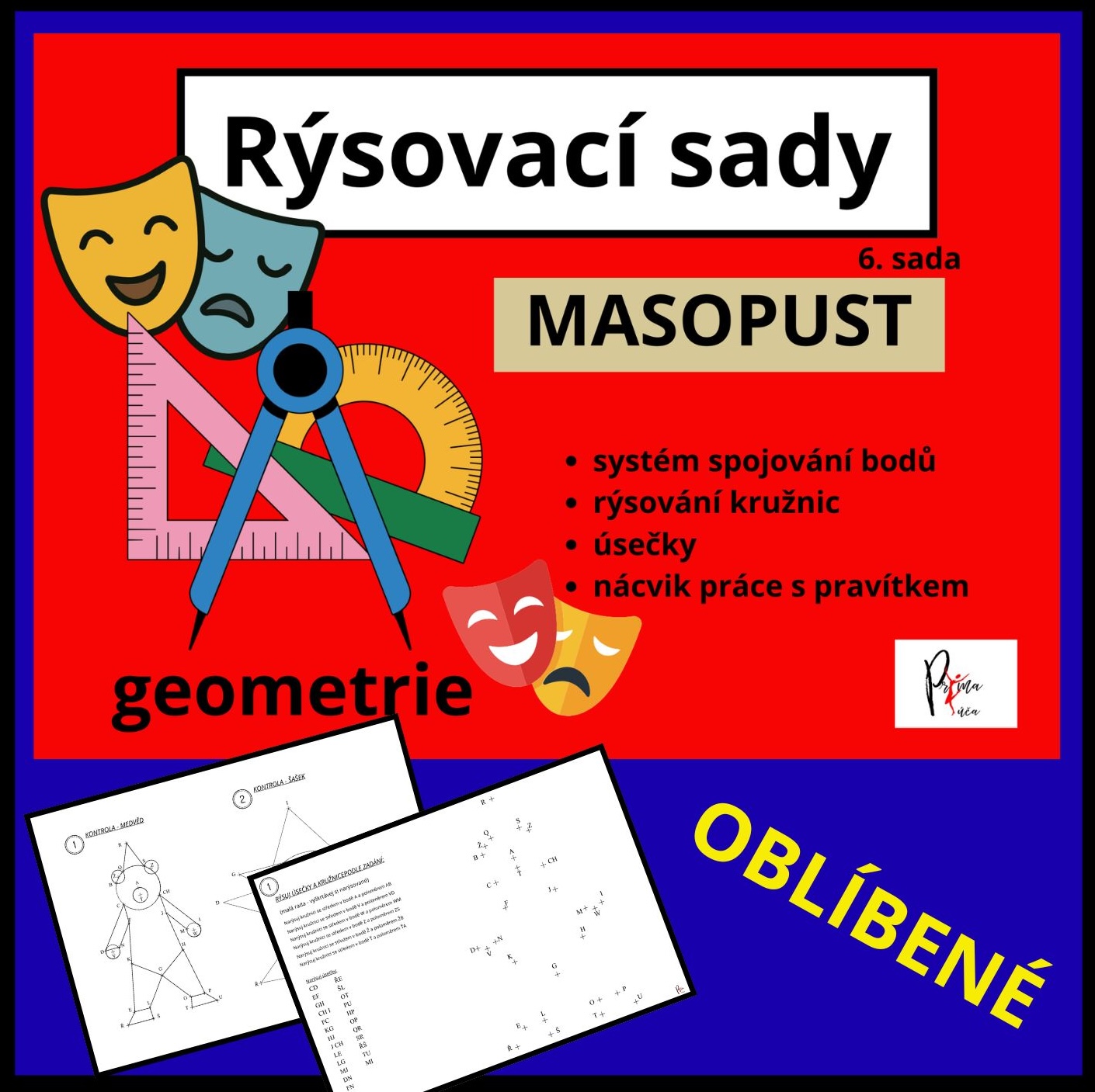 Tyto pracovní listy jsou určeny pro žáky 2.–5. ročníku a slouží k procvičení geometrie, přesnosti práce s pravítkem a základů konstrukce. Žáci podle zadaných úseček rýsují obrysy MASOPUSTNÍCH OBRÁZŮ, které vznikají postupným spojováním bodů. V některých variantách je součástí i rýsování kružnic pomocí kružítka.
