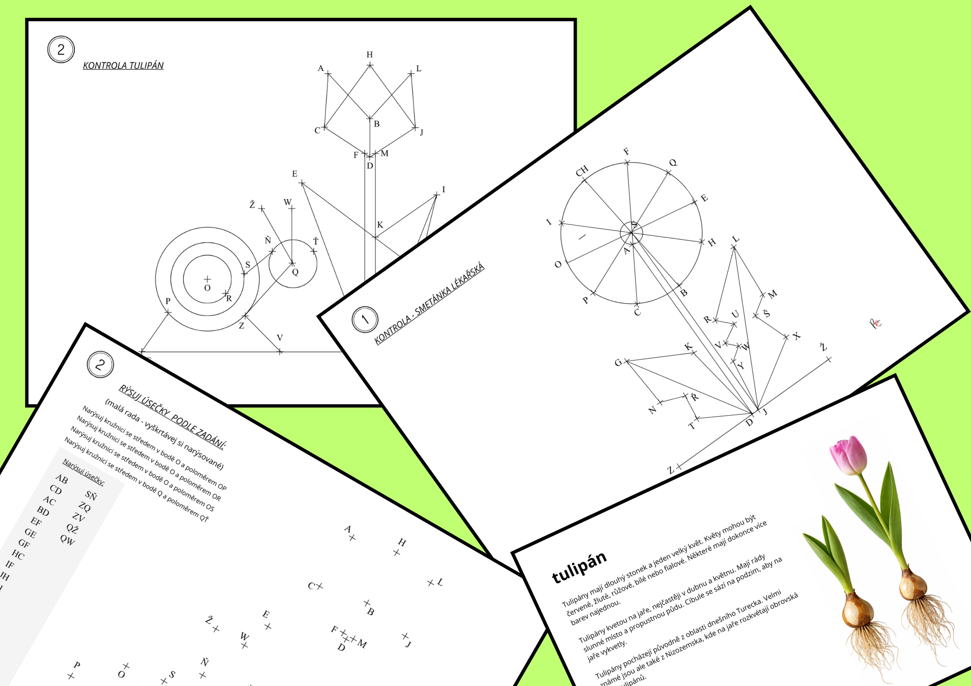 Tento výukový materiál je určen pro žáky 3.–5. ročníku základní školy a slouží k rozvoji geometrických dovedností prostřednictvím tematického rýsování bylin rostoucích v České republice. Žáci pracují s přesně vyznačenými body, které postupně spojují pomocí úseček a kružnic podle zadaného návodu. Vznikající obrazce odpovídají reálným tvarům bylin, například sněženky, smetánky, tulipánu, a umožňují propojit matematiku s poznáváním přírody.