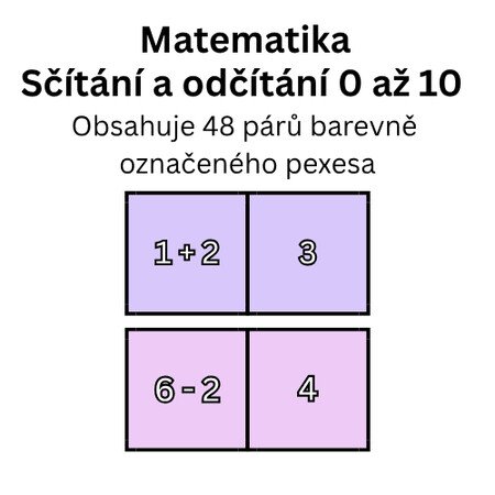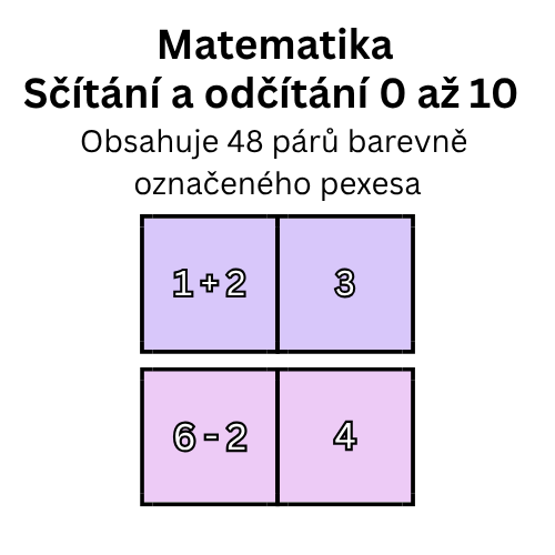 Pexeso sčítání a odčítání do deseti – 48 párů 🧠