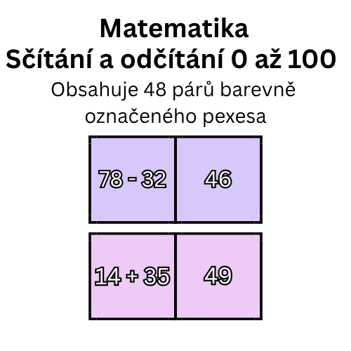 Pexeso sčítání a odčítání do sta – 48 párů 🧠