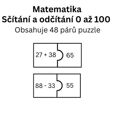 Puzzle sčítání a odčítání do sta – 48 párů 🧩