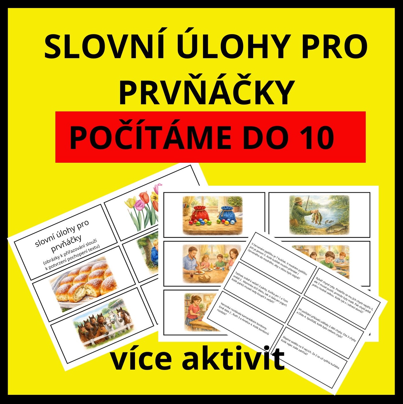 29 slovních úloh, 29 obrázků k přiřazení - vychází z textu, kopírují řešení, list s výsledky