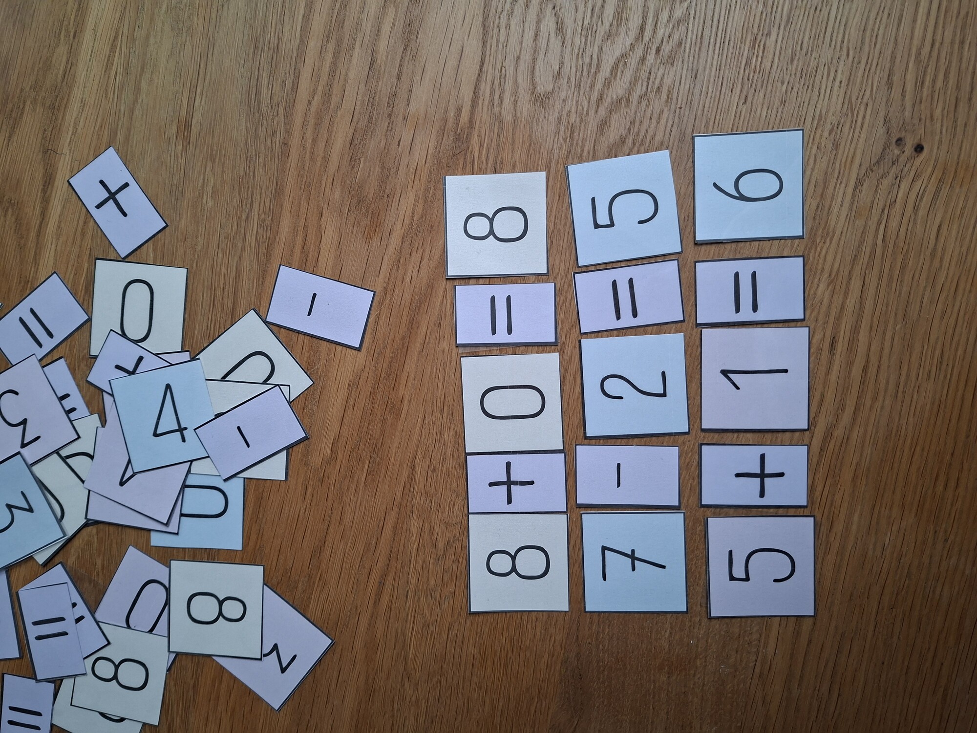 - kartičky s čísly, znaménky a výsledky do 10,