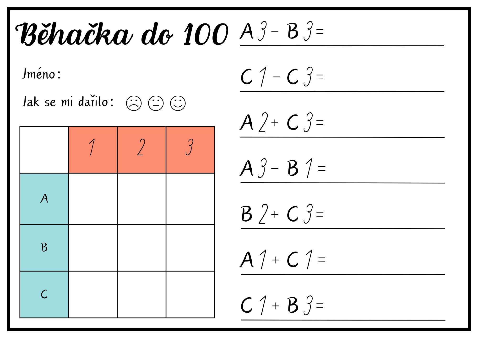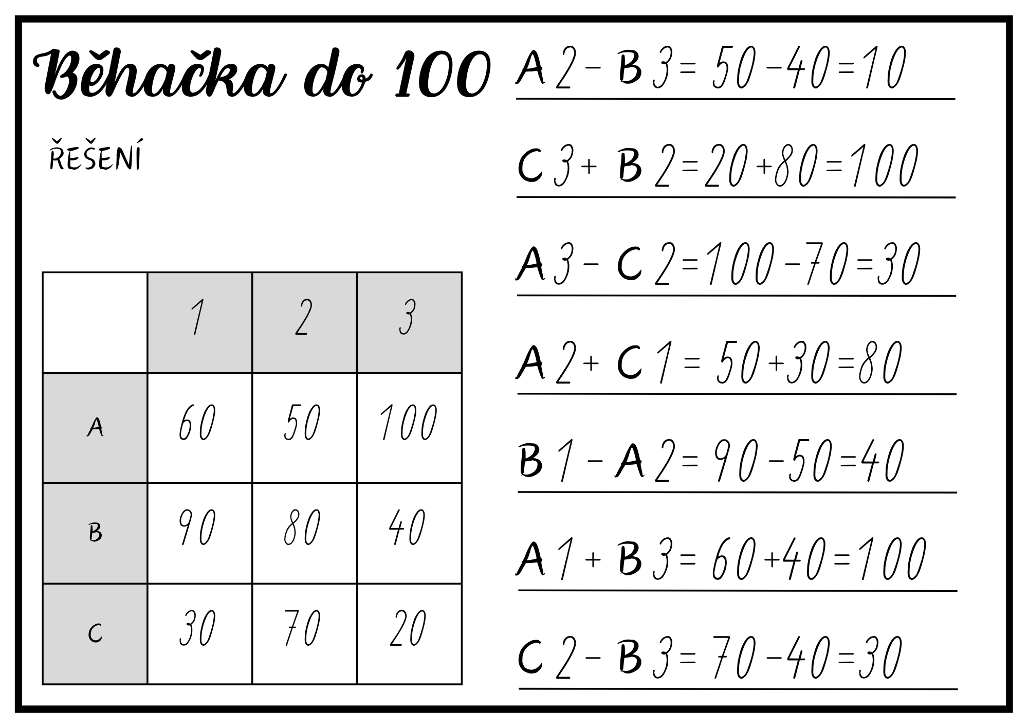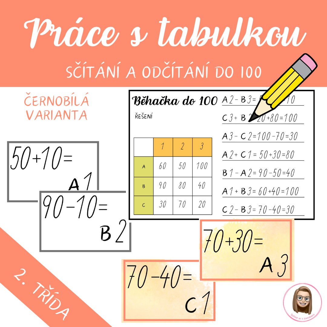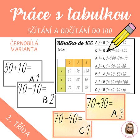 Ideální na procvičení sčítání a odčítání do 100 v 2. ročníku, jako pohybová aktivita nebo obohacení hodin matematiky.