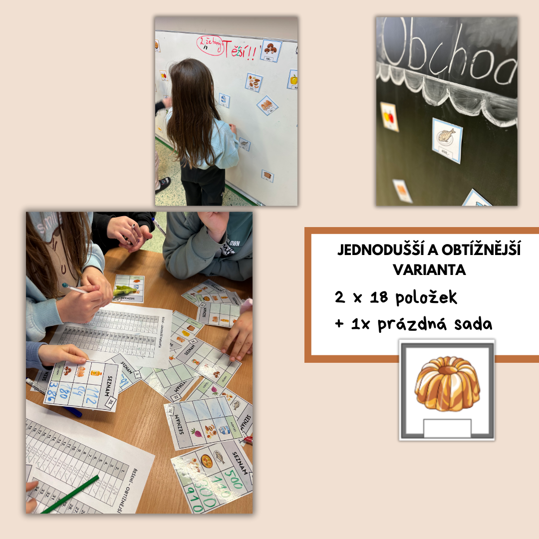 - K volným okénkům u zboží můžete vepsat příklady, jaké potřebujete, takže tento materiál využijete od 2.-4.třídy.