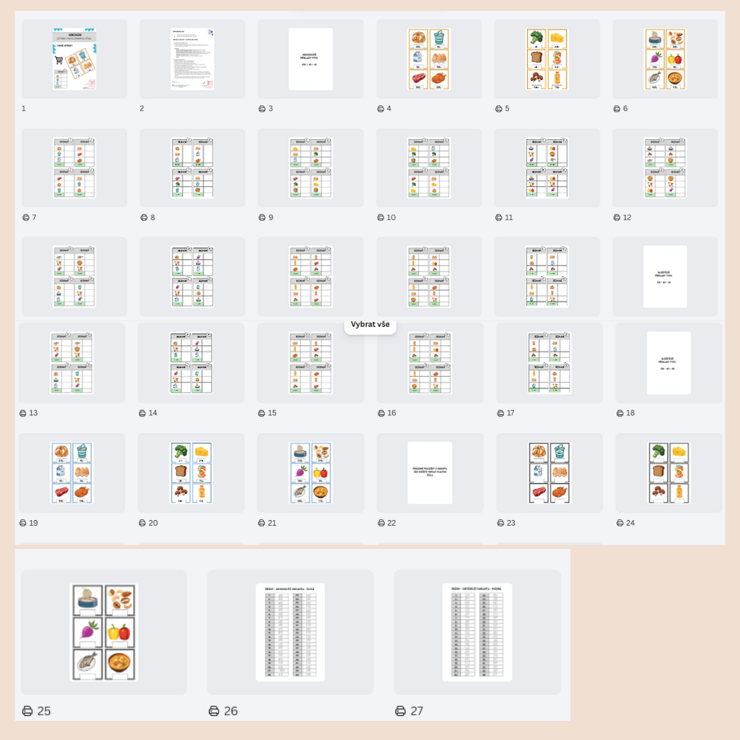 - Každý žák si vezme zalaminovanou kartičku s nákupním seznamem 1-44.
