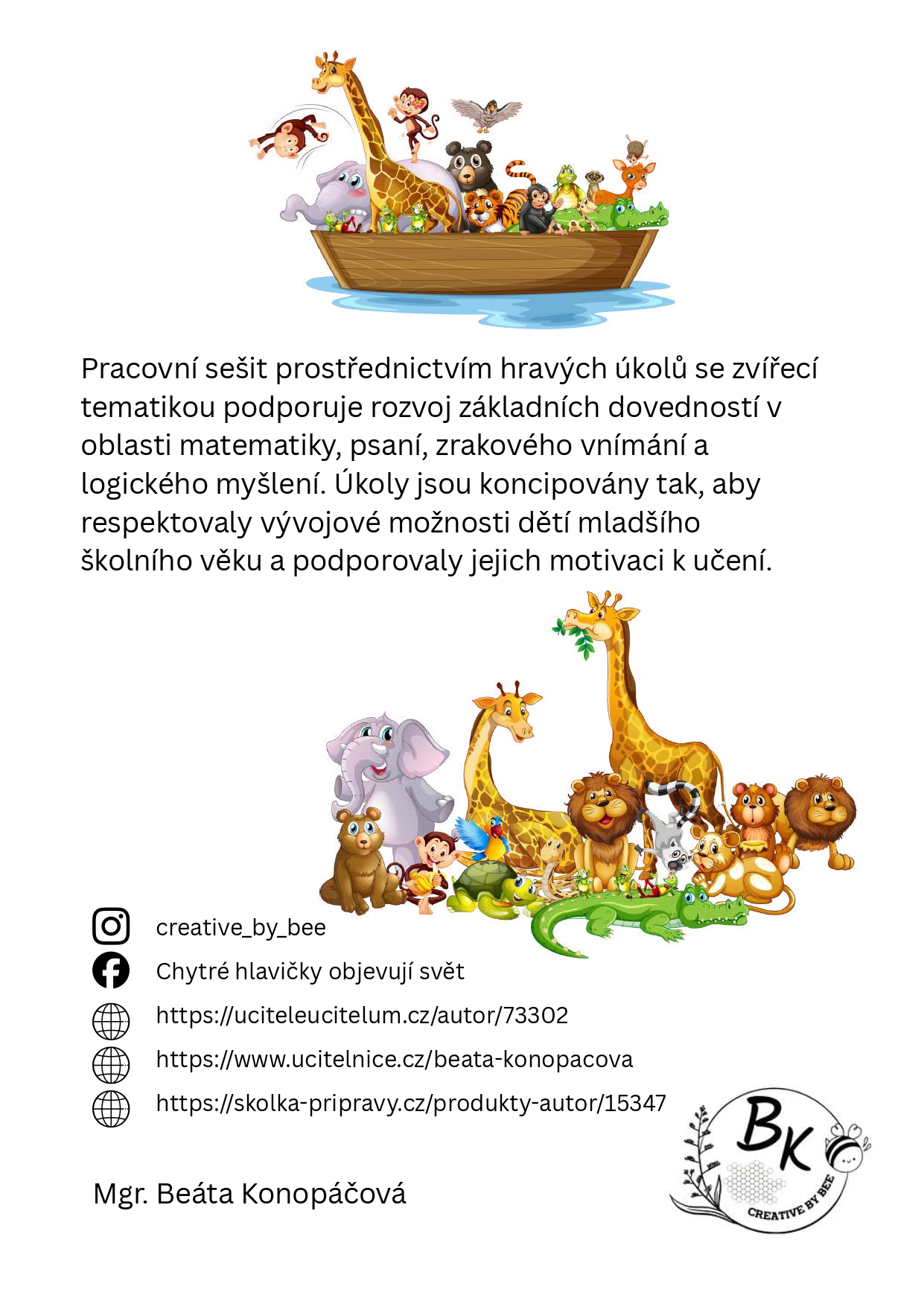 To vše hravou formou se zvířátky, přehledně a srozumitelně pro děti 1. třídy.