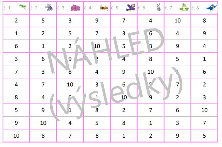 Obsah: 24 sloupečků po 10 příkladech, řešení