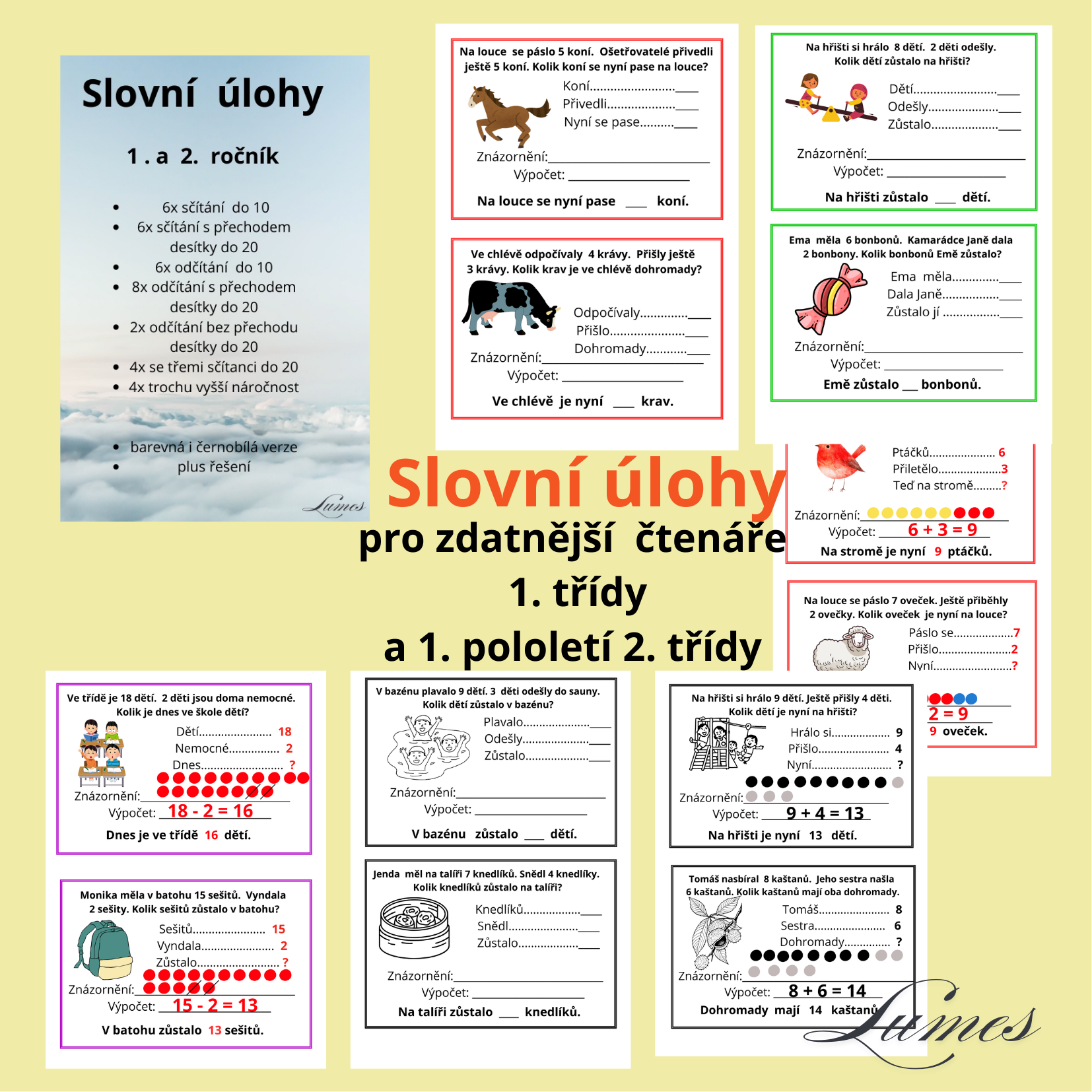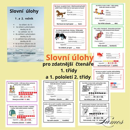 Tento soubor, který obsahuje 36 slovních úloh, je určen pro bystřejší čtenáře 1. třídy