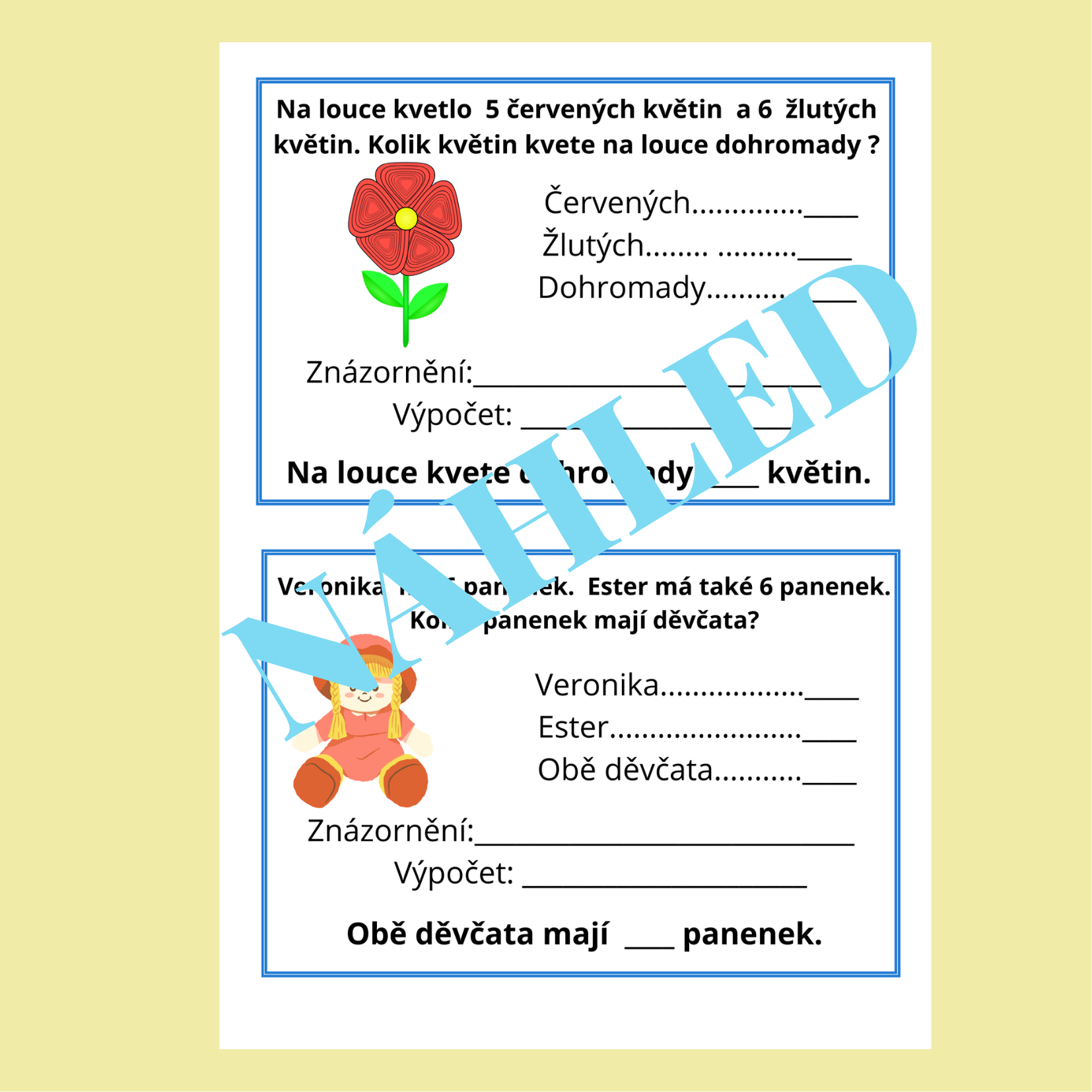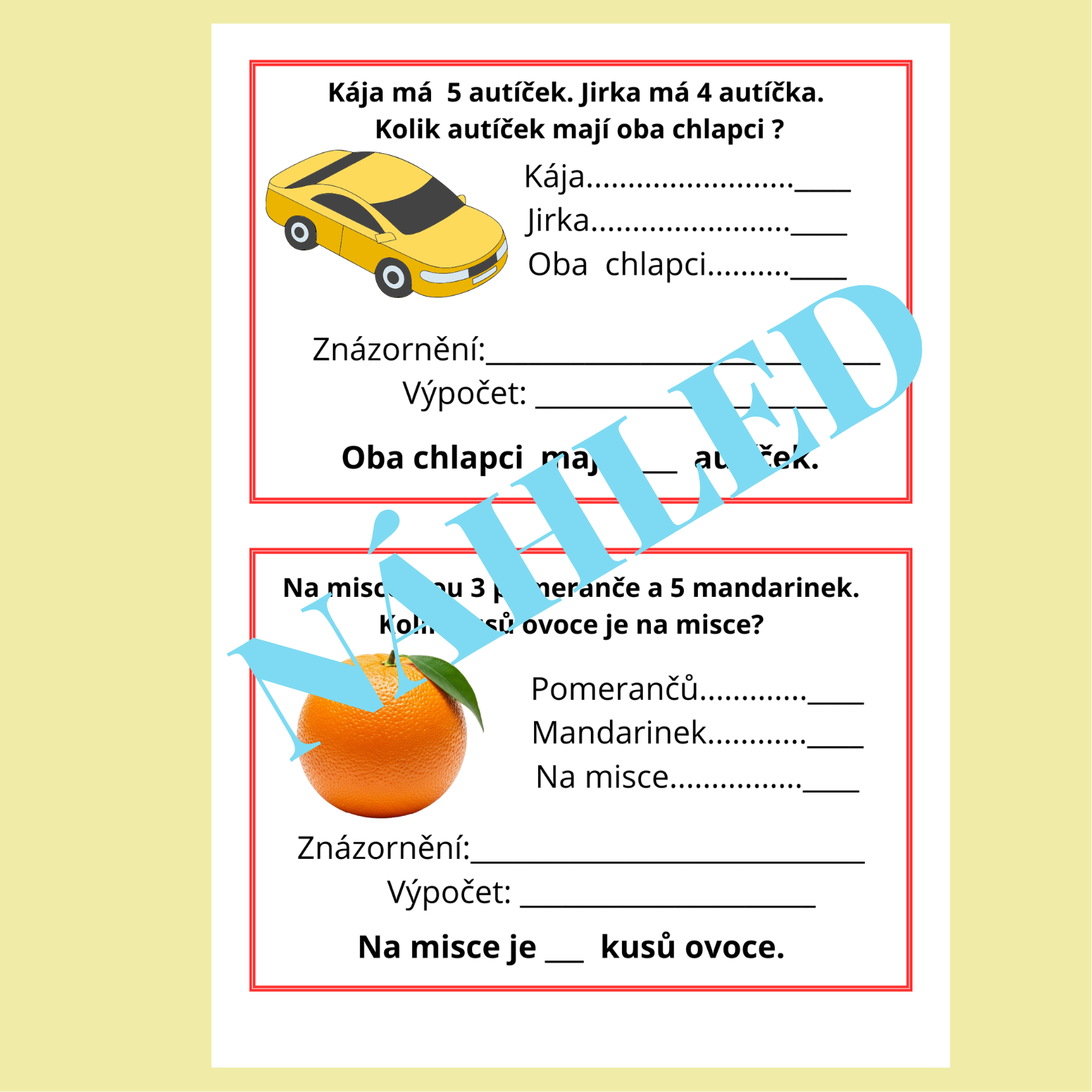 - Na každé straně se nacházejí dvě slovní úlohy, což zajišťuje přehlednost a dostatek prostoru pro zápis postupu i výsledku.
