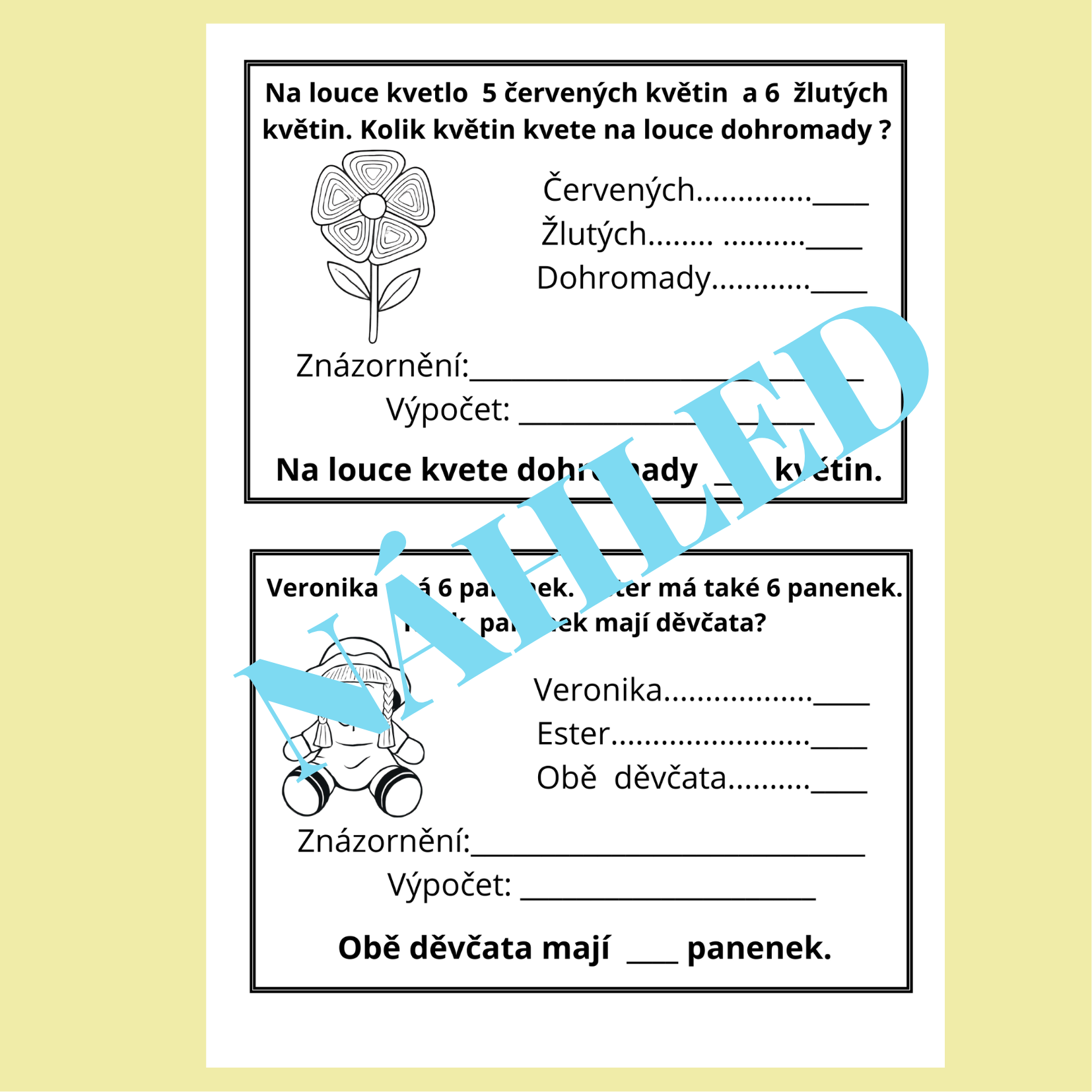 - černobílá verze – ideální pro úsporný tisk, domácí úkoly či pracovní listy