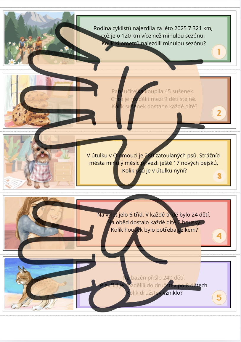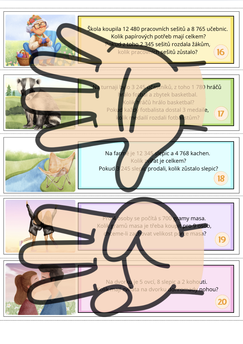 Materiál slouží k procvičování základních matematických operací a rozvoji práce se slovními úlohami. 💚