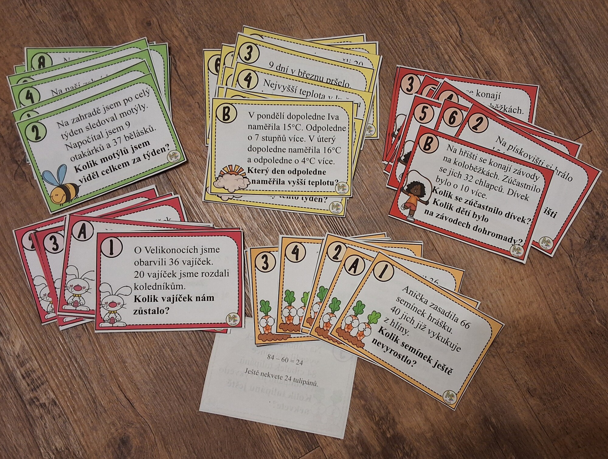 Slovní úlohy jsou rozděleny do pěti jarních témat: