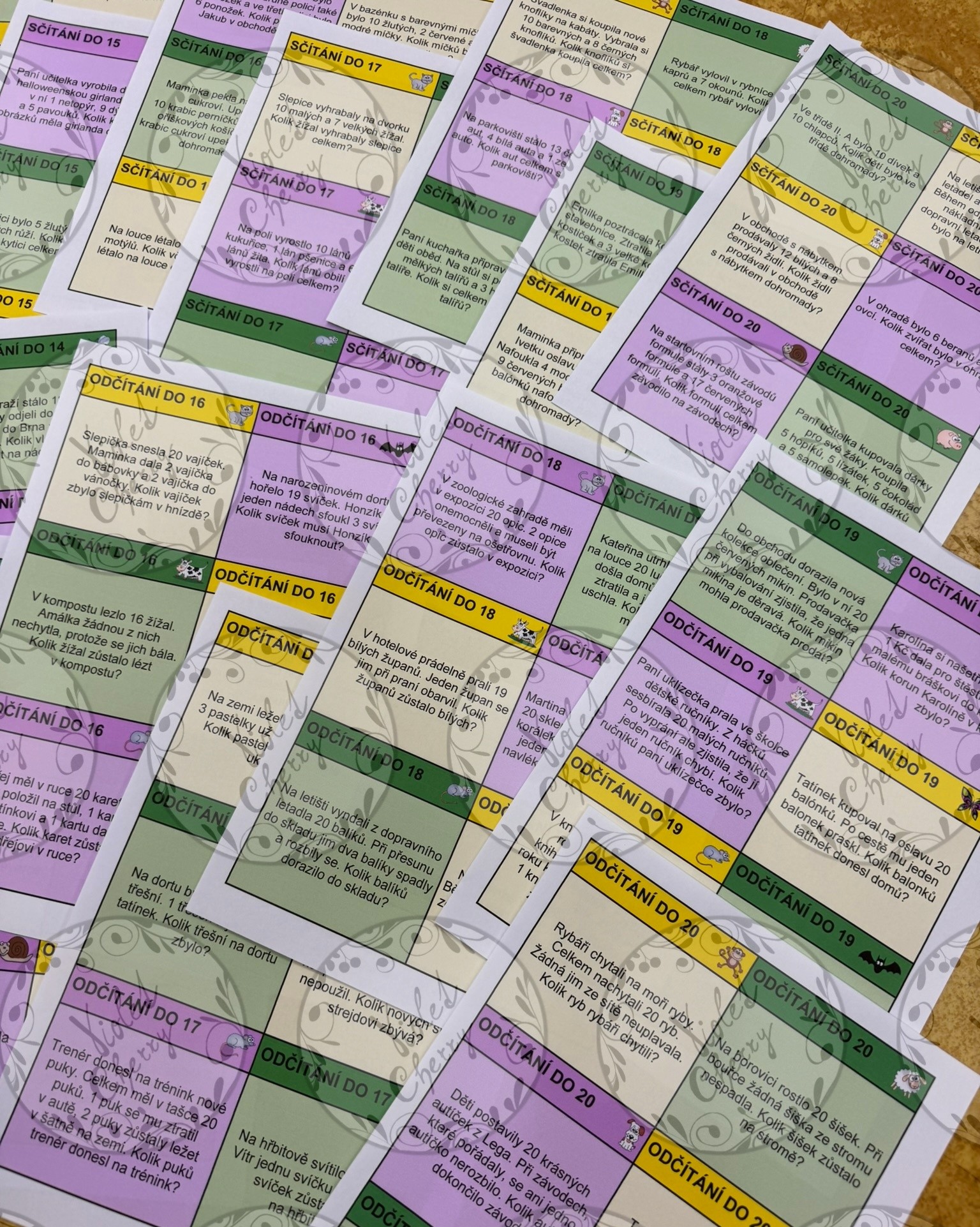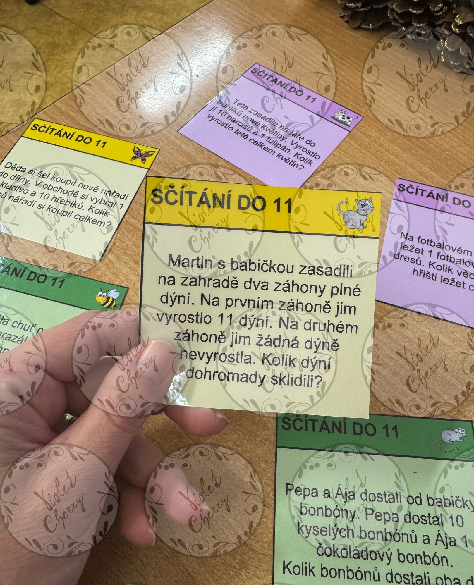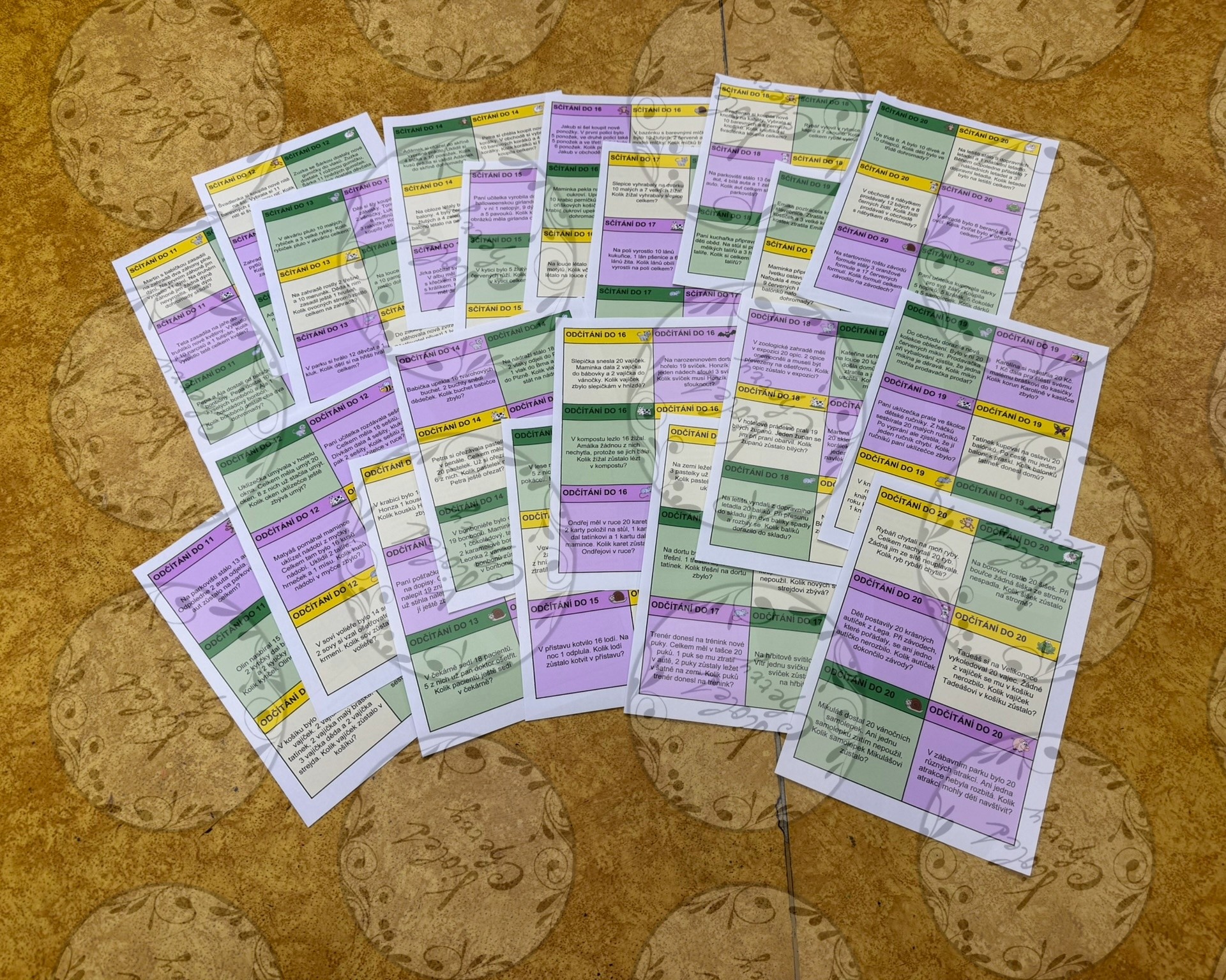 Materiál je určený jako didaktické kartičky pro procvičení a fixaci řešení slovních úloh od 11 do 20. Lze ho využít přímo ve vyučovací hodině pro společnou, skupinovou i individuální práci žáků nebo jako materiál na přestávku jako volné počítání žáků.