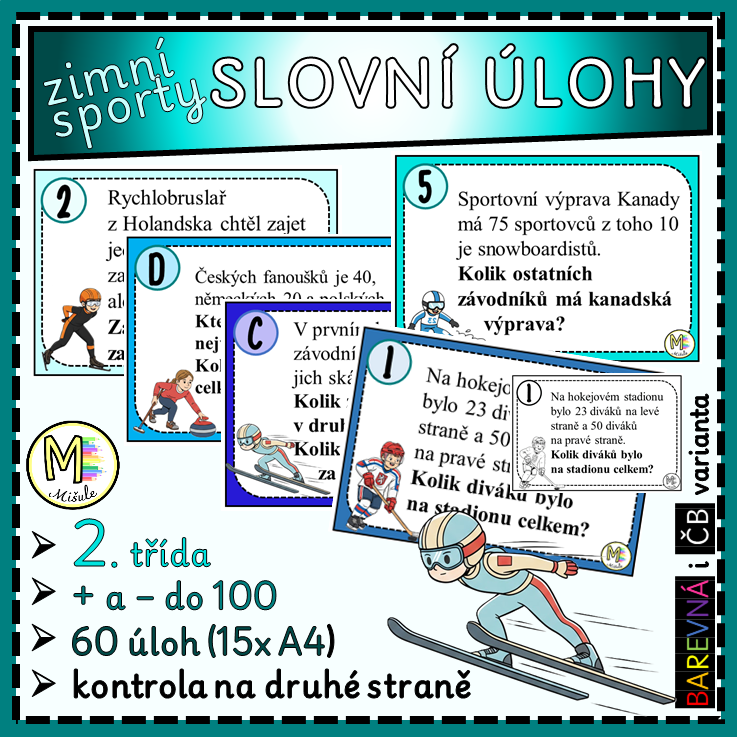 Zimní sporty – slovní úlohy (2. třída, numerace do 100)