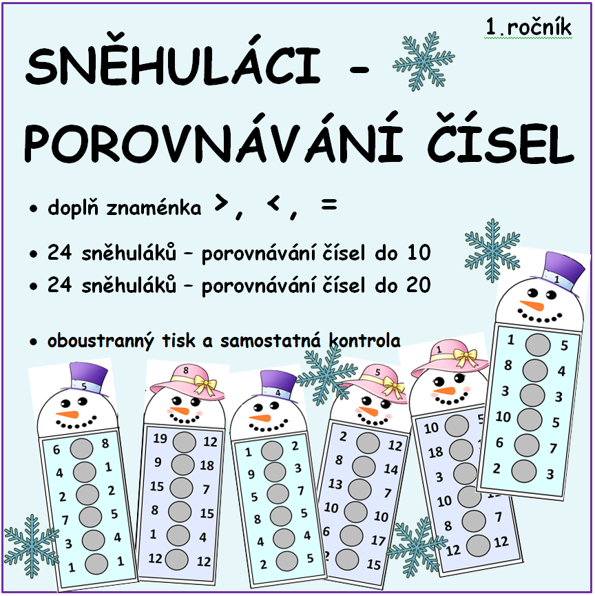 - 24 kartiček sněhuláčích slečen s porovnáváním čísel do 20 + kontrola.