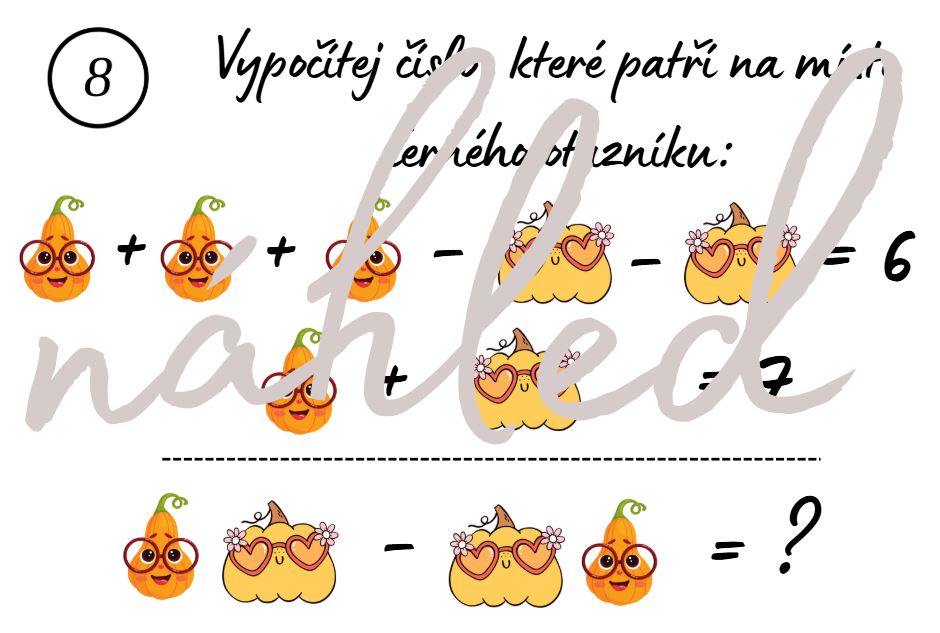 - zapsaný příklad žáci vypočítají, cílem je získat hodnotu, která patří na místo černého otazníku, platí přednost početních operací