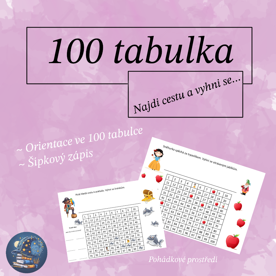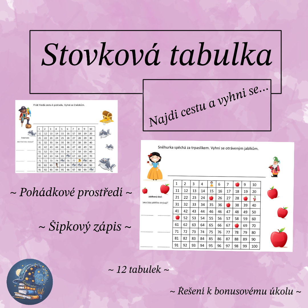 - Rozvoj orientace ve stovkové tabulce, šipkový zápis, vhodné pro rychlíky, pohádkové prostředí.