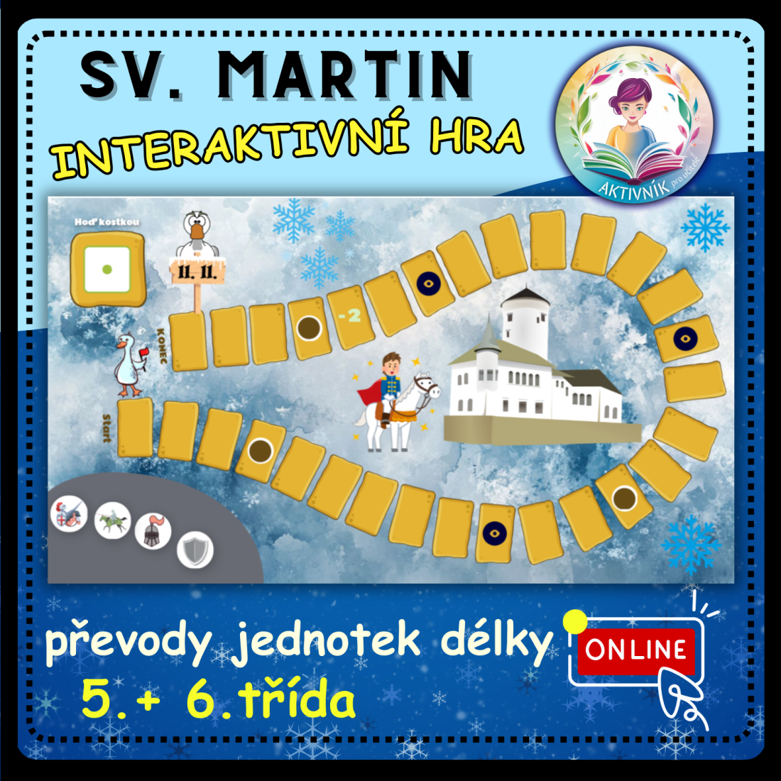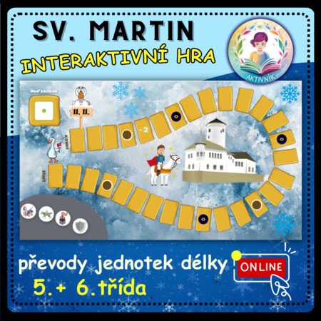 Pro interaktivní tabule (hraje celá třída) i tablety (dvojice/skupiny). Opakování převodů jednotek délky a slovních úloh zábavnou formou. Obsahuje řešení = okamžitá zpětná vazba. Obsahuje také pohybové chvilky. Hra je celá pouze online. Po dokončení hry se objeví překvapení ve formě písničky o sv. Martinovi. Lze propojit s HV.