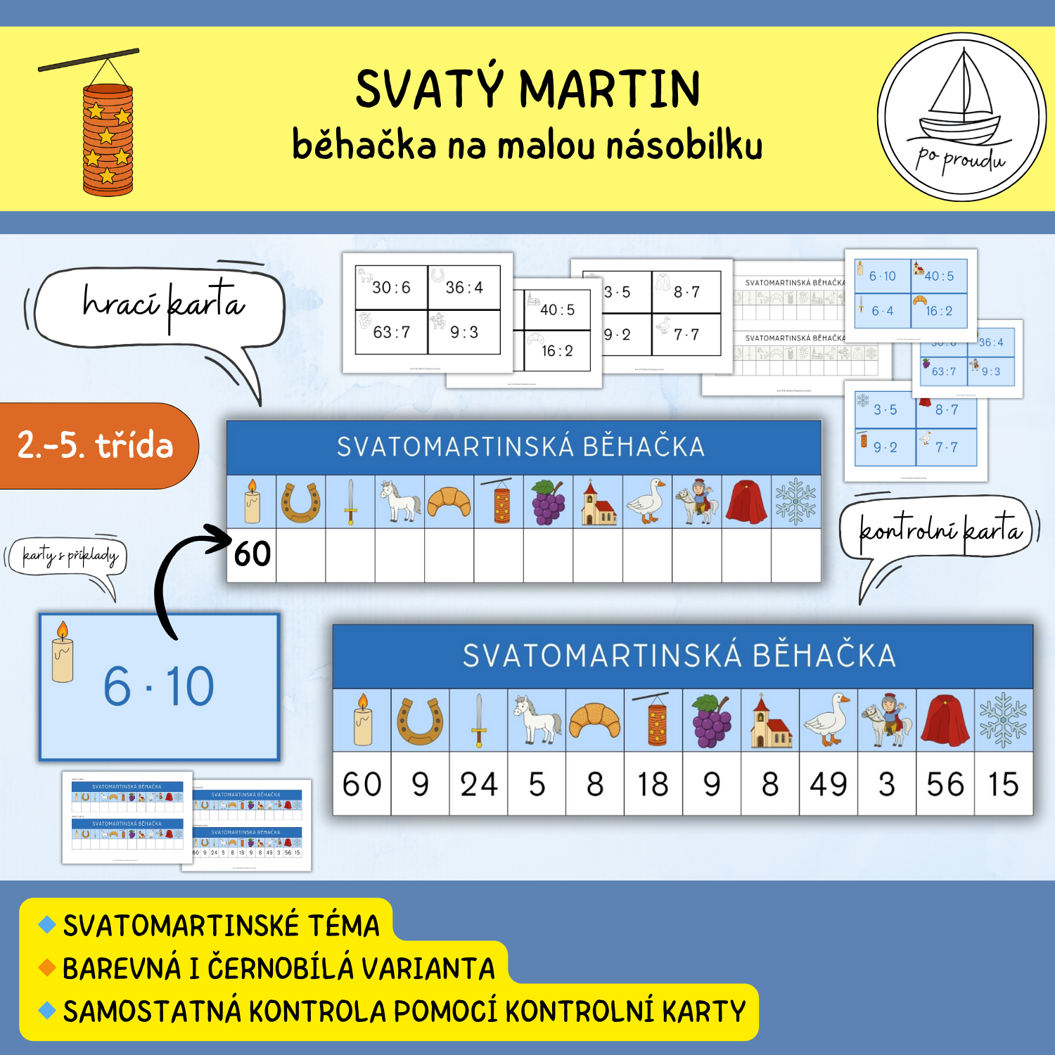 Spojte matematiku s radostí z pohybu i atmosférou svatomartinského dne! Tento hravý materiál procvičuje malou násobilku a dělení formou běhací aktivity, která rozproudí děti i v chladných listopadových dnech.